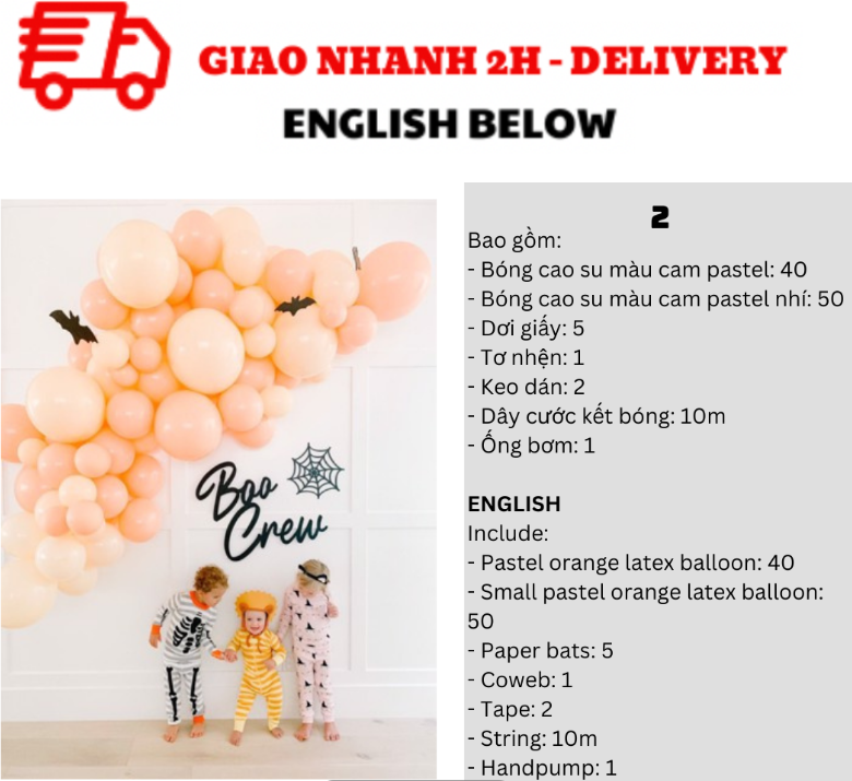 BỘ BÓNG TRANG TRÍ HALLOWEEN MÀU CAM PASTEL BBHL40