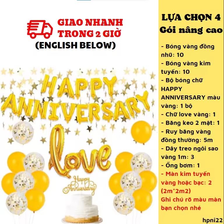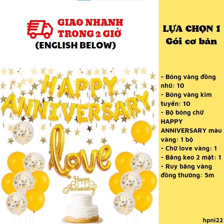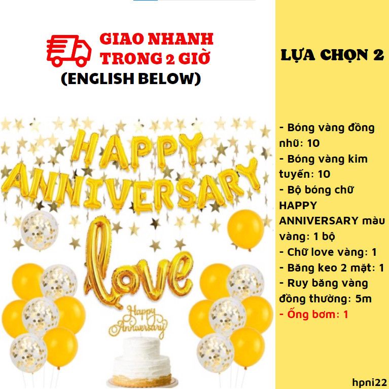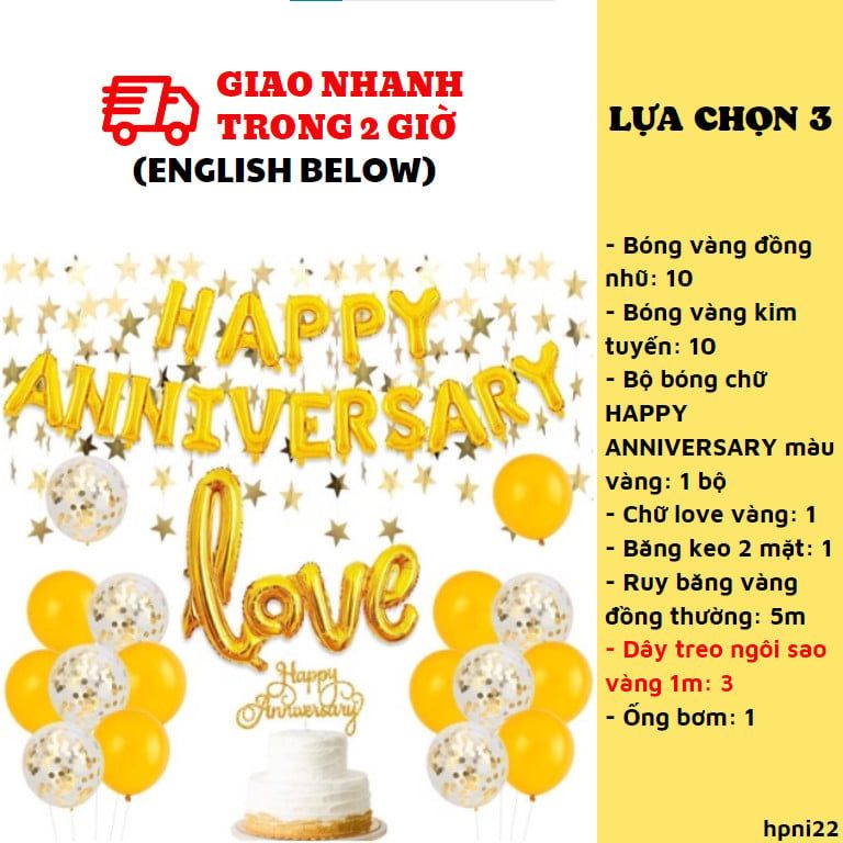 3. Bộ bóng chữ HAPPY ANNIVERSARY màu vàng: 1 bộ
