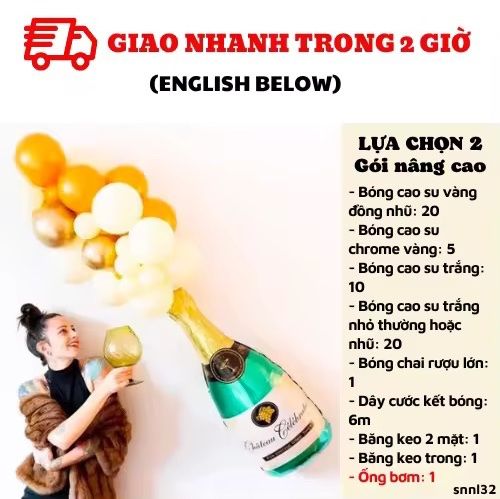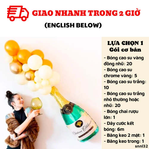 Bao gồm: - Bóng cao su vàng đồng nhũ: 20/ Bóng cao su chrome vàng: 5- Bóng cao su trắng: 10/ Bóng cao su trắng nhỏ thường hoặc nhũ: 20- Bóng chai rượu lớn: 1- Dây cước kết bóng: 6m- Băng keo 2 mặt: 1/ Băng keo trong: 1LỰA CHỌN 2: GÓI NÂNG CAOCombo có giá: 299KNay chỉ còn: 186K
