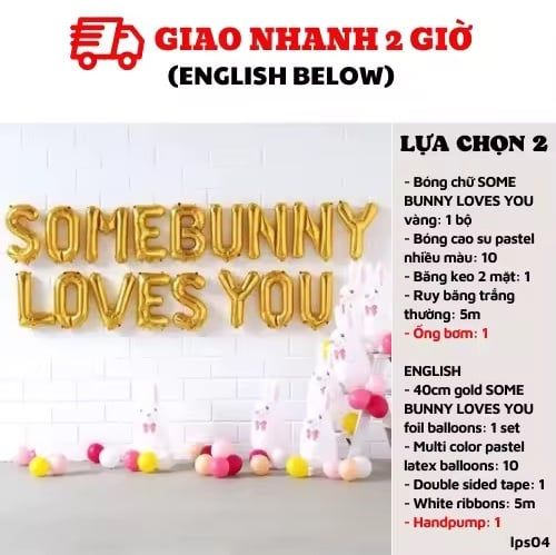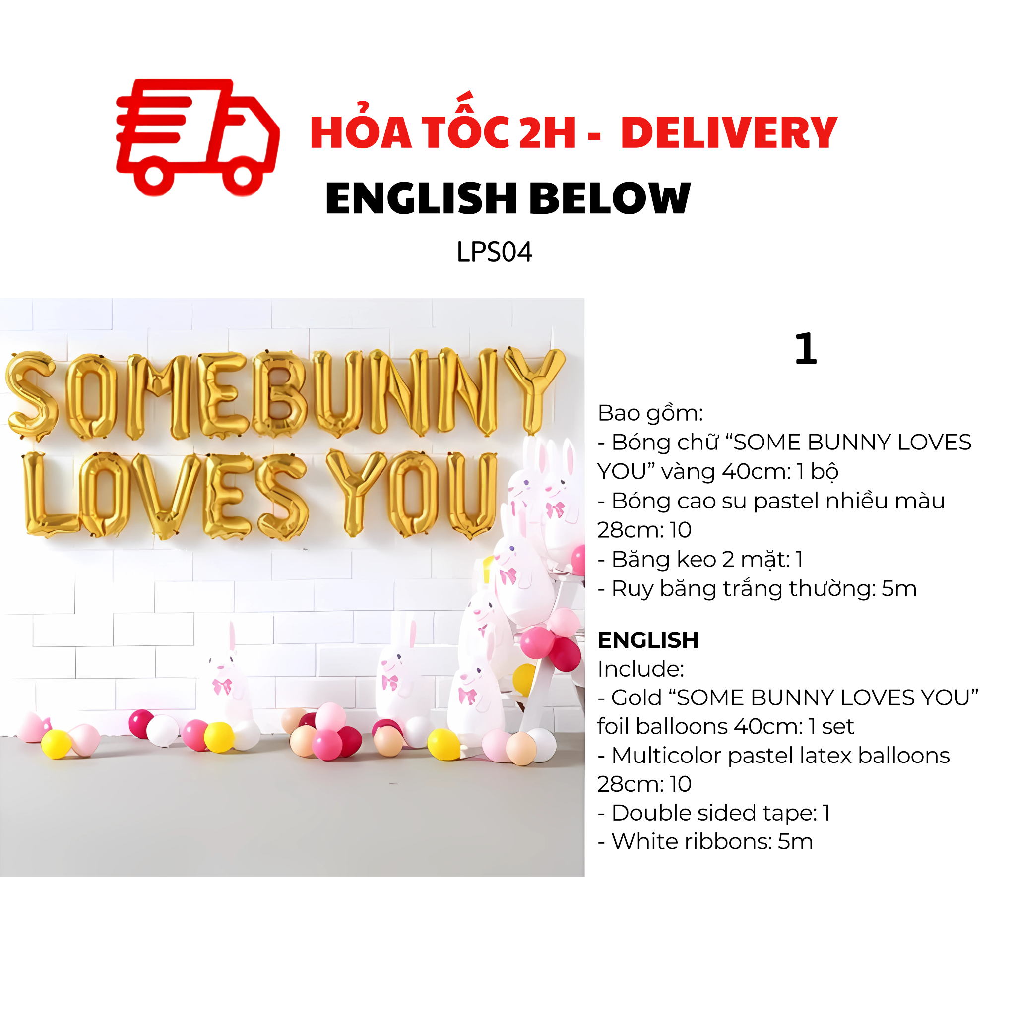 - Bóng chữ SOME BUNNY LOVES YOU vàng 40cm: 1 bộ