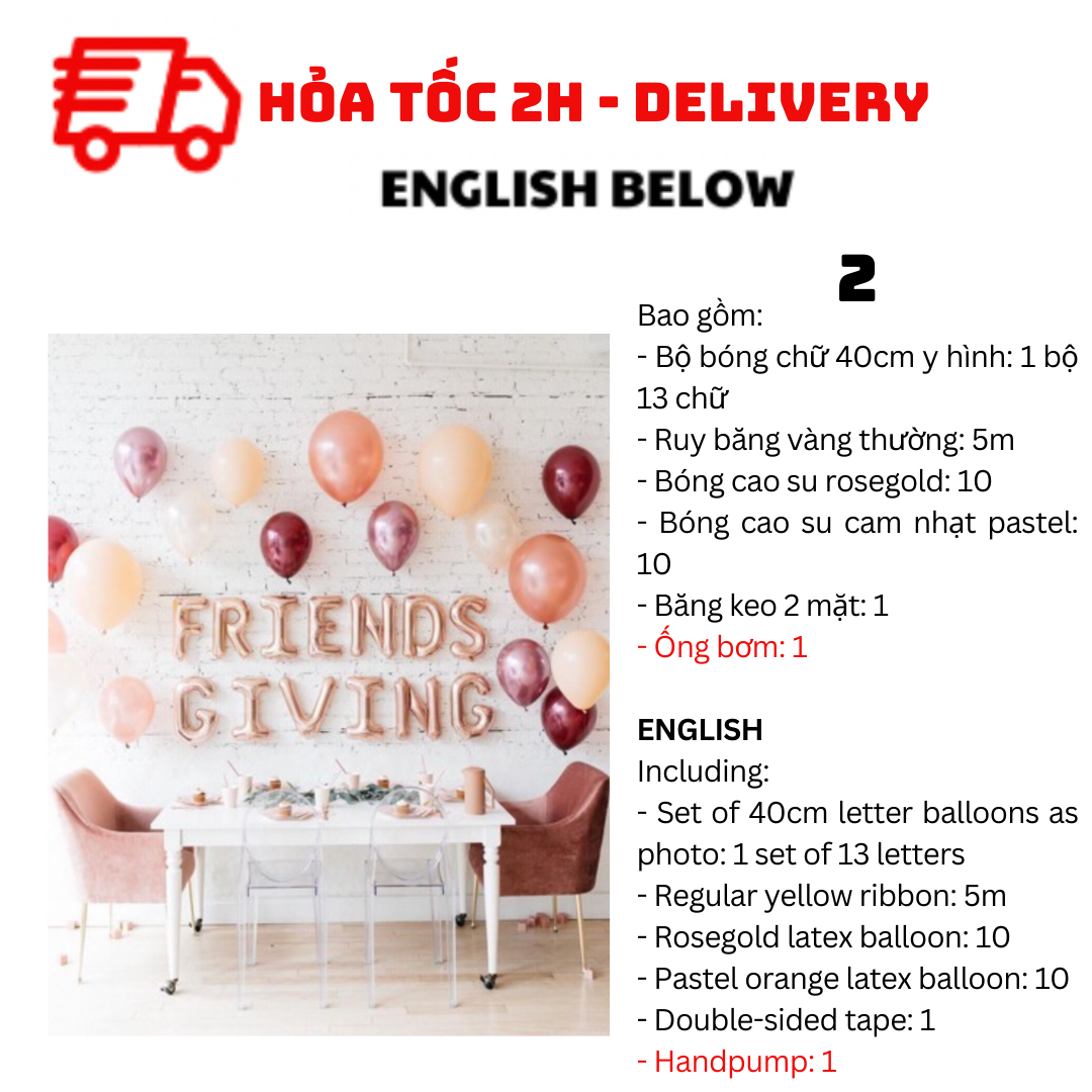 - Bộ bóng chữ 40cm y hình: 1 bộ 13 chữ