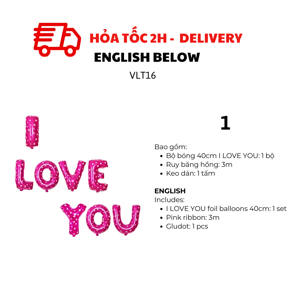 - Bộ bóng 40cm I LOVE YOU: 1 bộ
