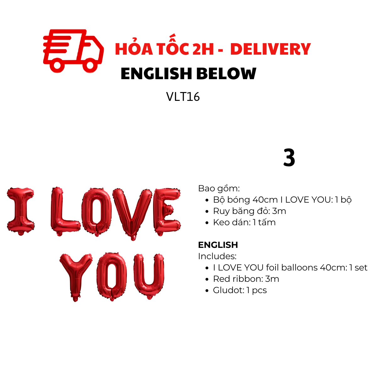 BỘ BÓNG TRANG TRÍ LỄ TÌNH NHÂN, VALENTINES CHỮ I LOVE YOU VLT16