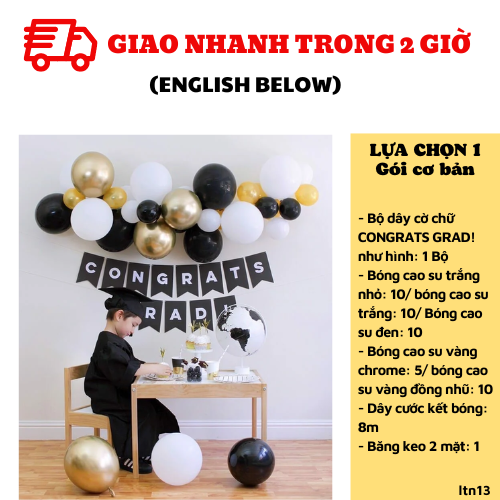 - Bộ dây cờ chữ CONGRATS GRAD! như hình: 1 Bộ