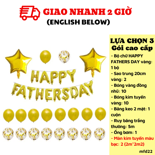 - Bộ chữ HAPPY FATHERS DAY vàng: 1 bộ