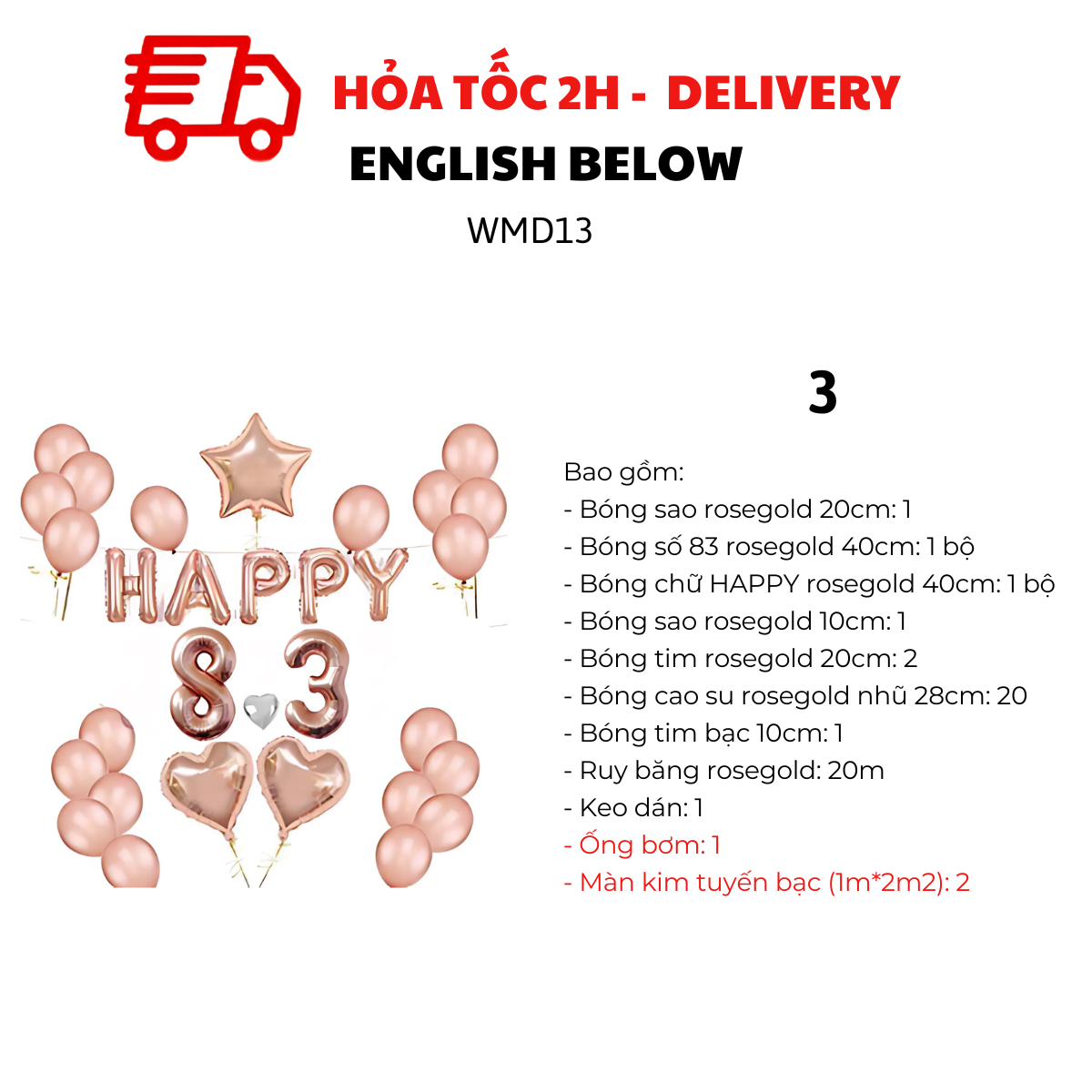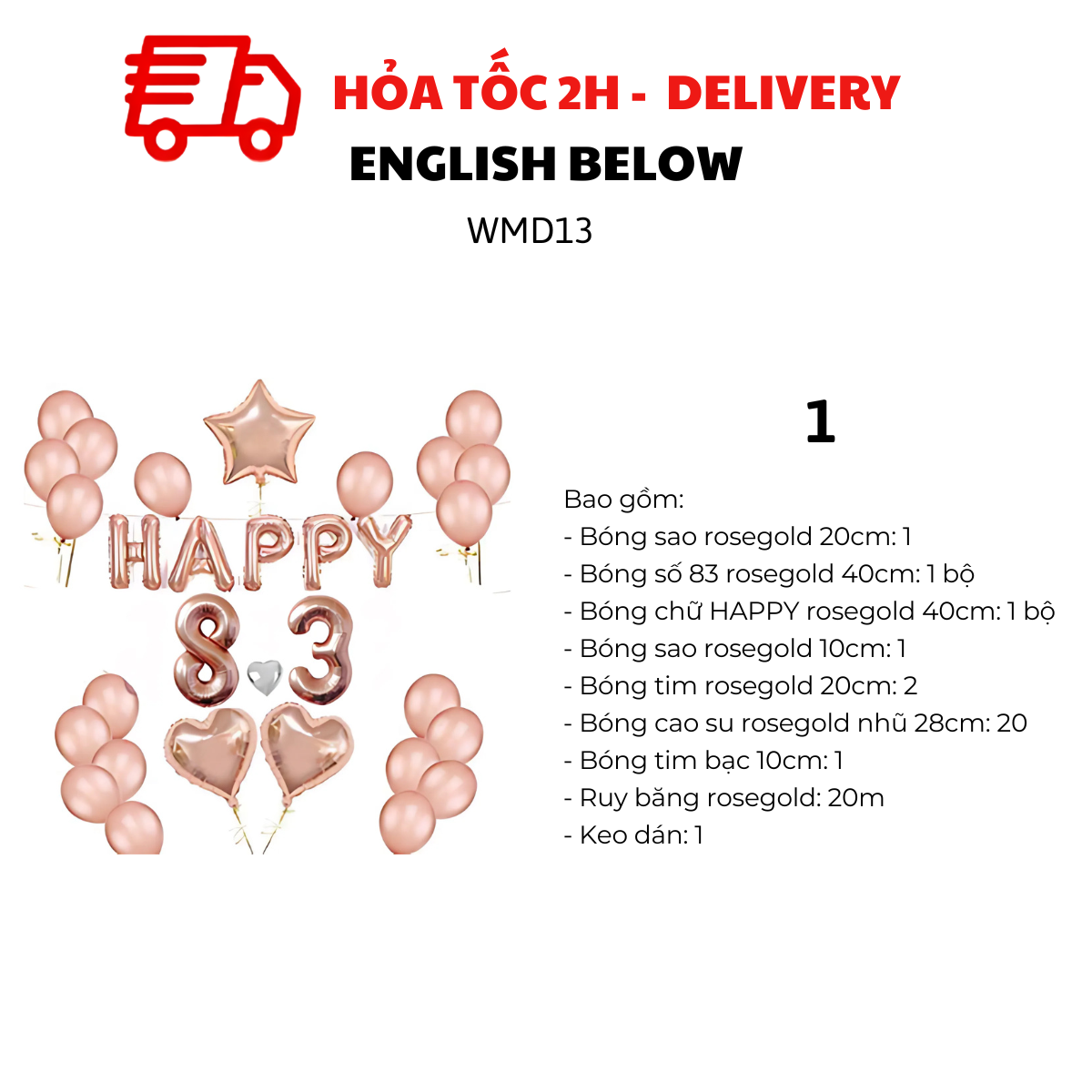 - Bộ chữ HAPPY màu rosegold: 1 bộ