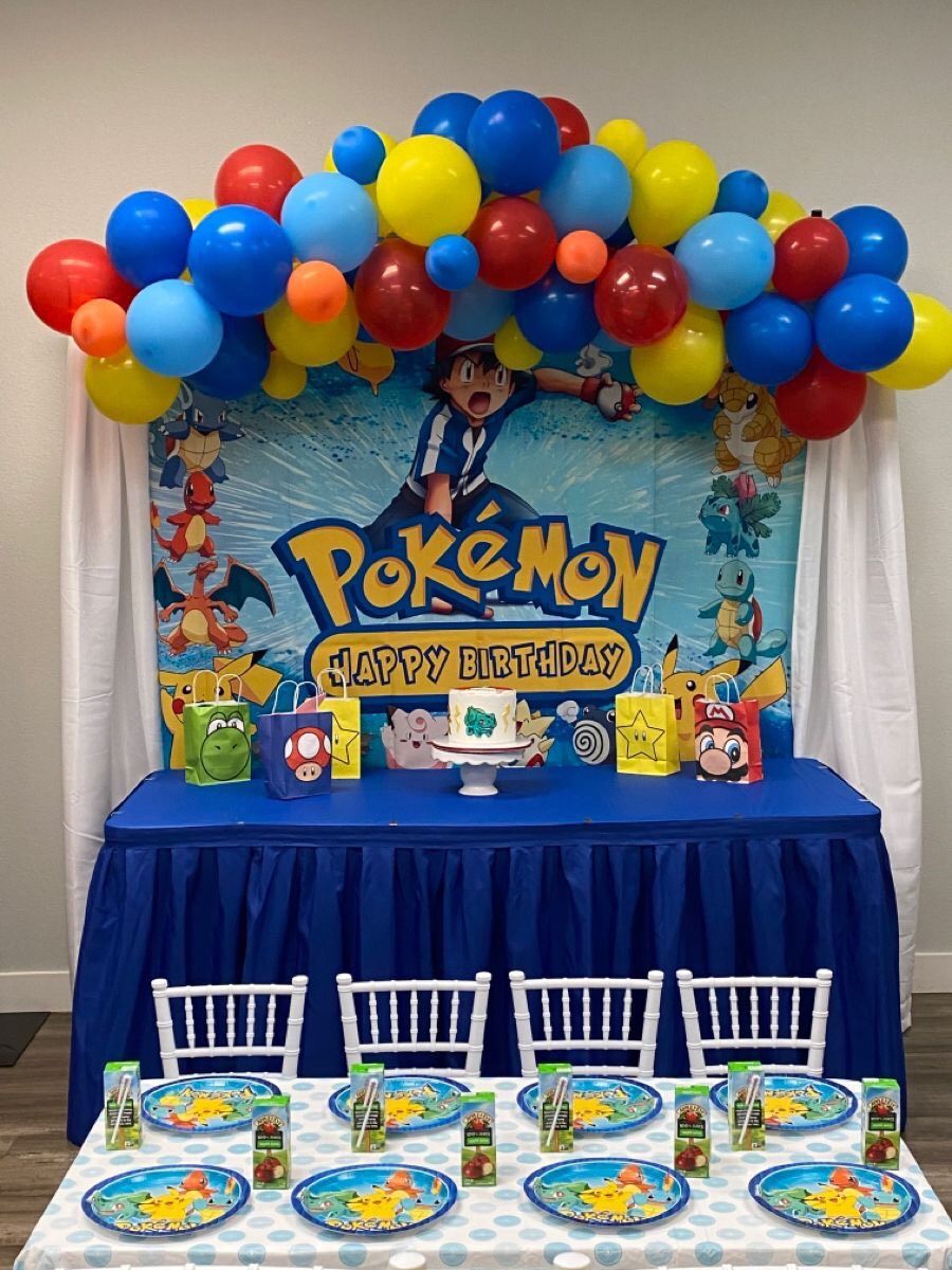 - 1 set of ‘POKEMON’ foil balloons or HPBD foil balloons