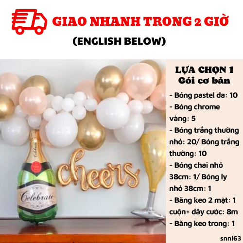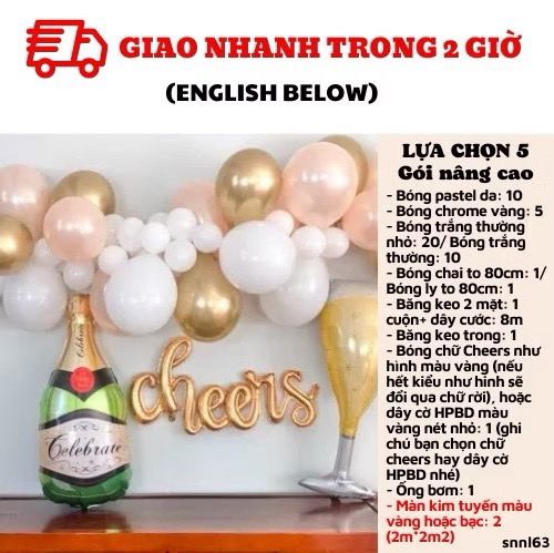 - 1 set of gold color ‘Cheers’ like photo (if this product is out of stock, we’ll contact you to change the design), or 1 HPBD banner (Please note down your choice)