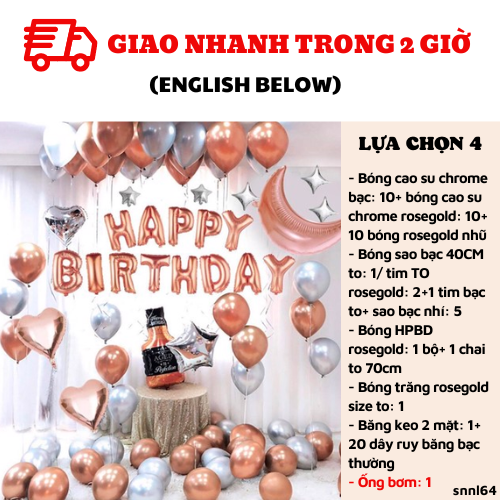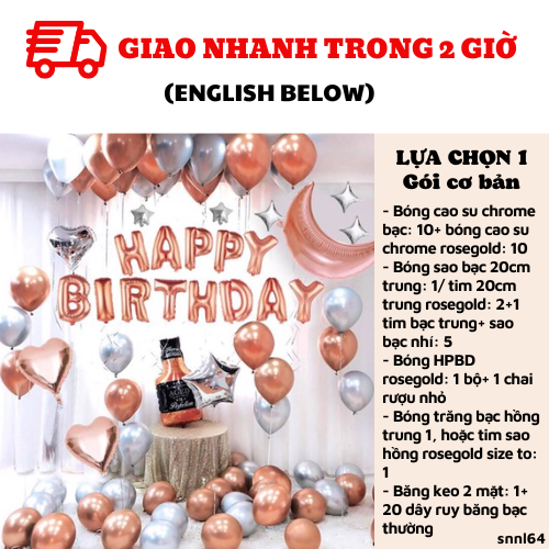 - Bóng HPBD rosegold: 1 bộ+ 1 chai rượu nhỏ