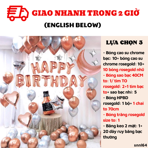 - Bóng HPBD rosegold: 1 bộ+ 1 chai to 70cm