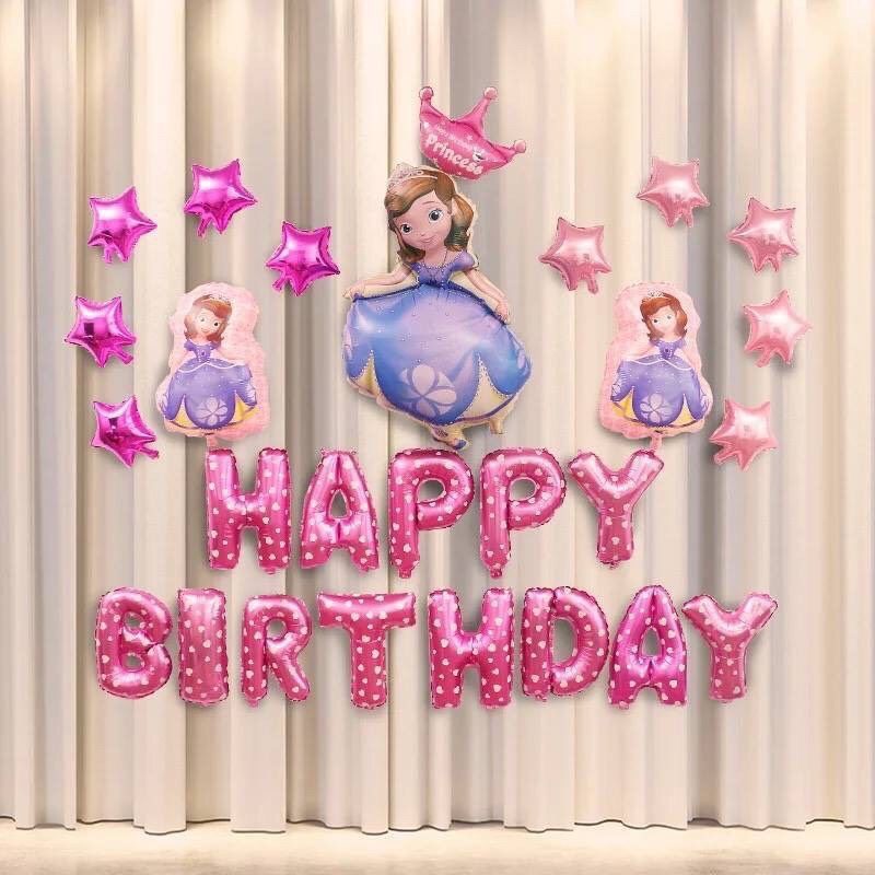 BỘ BÓNG TRANG TRÍ SINH NHẬT SOFIA MÀU HỒNG - PINK SOFIA FOIL BALLOON COMBO SEC04