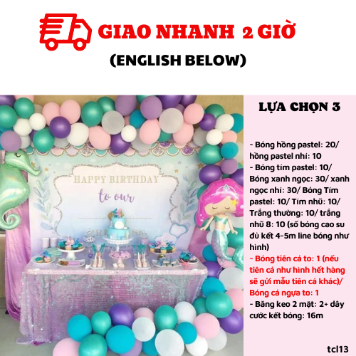 LỰA CHỌN 3: NHƯ LỰA CHỌN 1, NHƯNG BÓNG TIÊN CÁ VÀ CÁ NGỰA ĐỔI TỪ SIZE NHỎ QUA SIZE TO