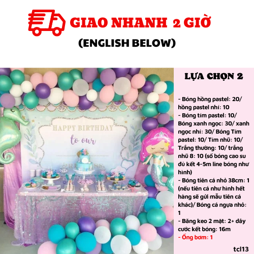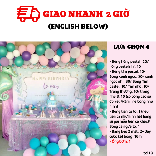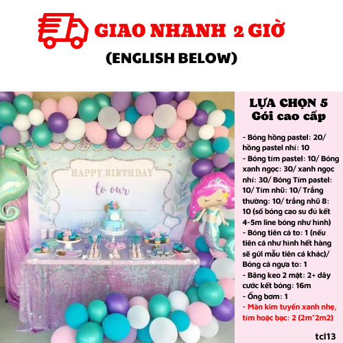 - Large mermaid foil balloon: 1 (if this mermaid out of stock, we’ll change another mermaid)
