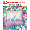 - Bóng tím pastel: 10/ Bóng xanh ngọc: 30/ xanh ngọc nhí: 30/ Bóng Tím pastel: 10/ Tím nhũ: 10/ Trắng thường: 10/ trắng nhũ 8: 10 (số bóng cao su đủ kết 4-5m line bóng như hình)