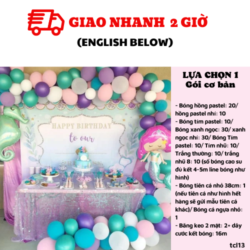 - Bóng tiên cá nhỏ 38cm: 1 (nếu tiên cá như hình hết hàng sẽ gửi mẫu tiên cá khác)/ Bóng cá ngựa nhỏ: 1