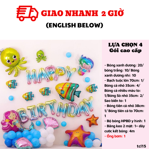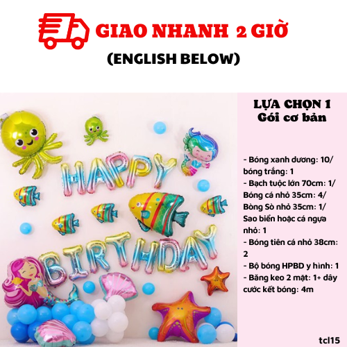 - Bóng tiên cá nhỏ 38cm: 1/ Bóng tiên cá to 70cm: 1