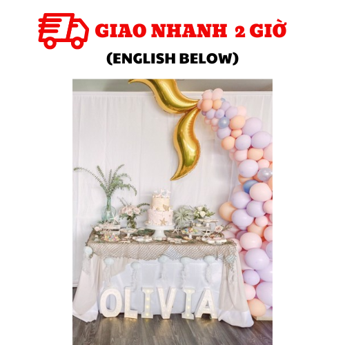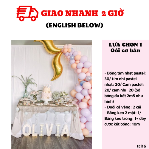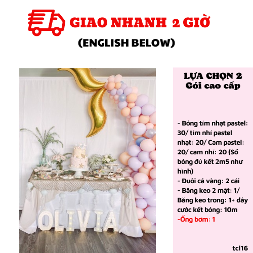- Bóng tím nhạt pastel: 30/ tím nhí pastel nhạt: 20/ Cam pastel: 20/ cam nhí: 20 (Số bóng đủ kết 2m5 như hình)