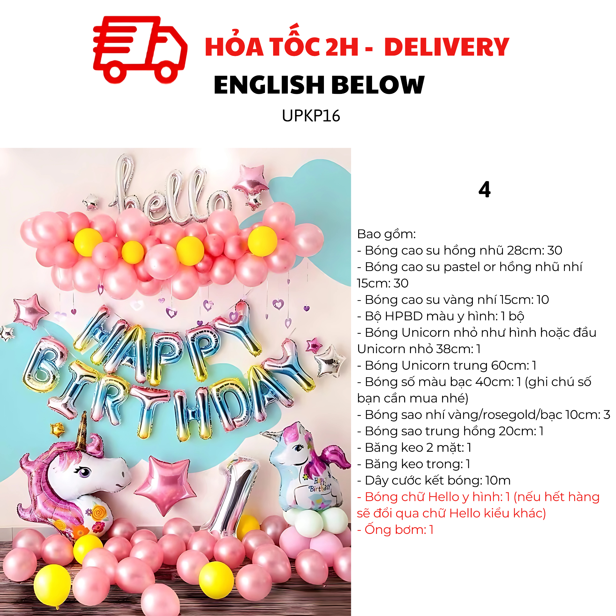 - Bóng chữ Hello y hình: 1 (nếu hết hàng sẽ đổi qua chữ hello kiểu khác)
