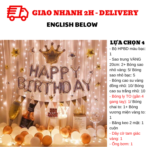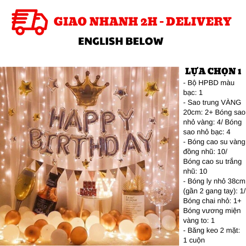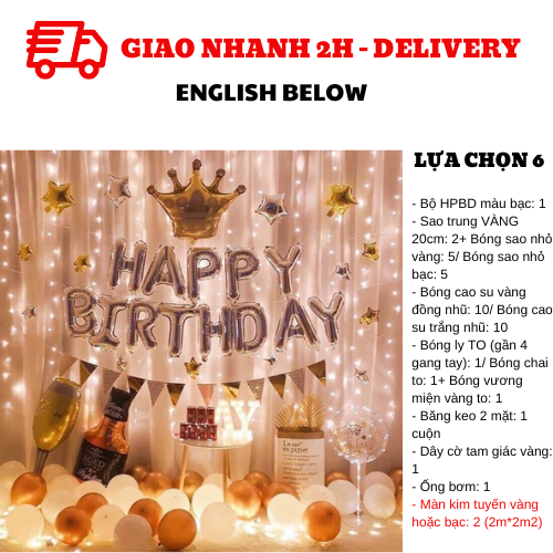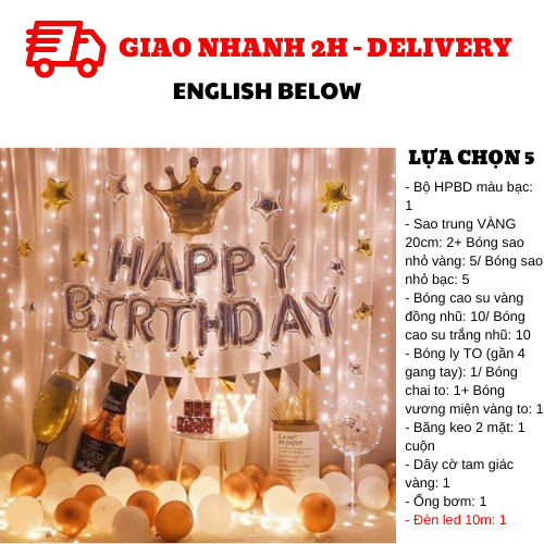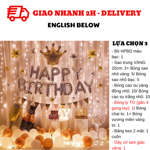 - 1 set of silver HPBD foil balloons/ 2 20cm gold star foil balloons