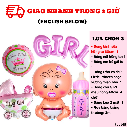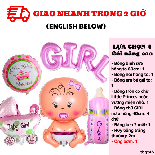 - Bóng chữ GIRL màu hồng 40cm: 4 chữ