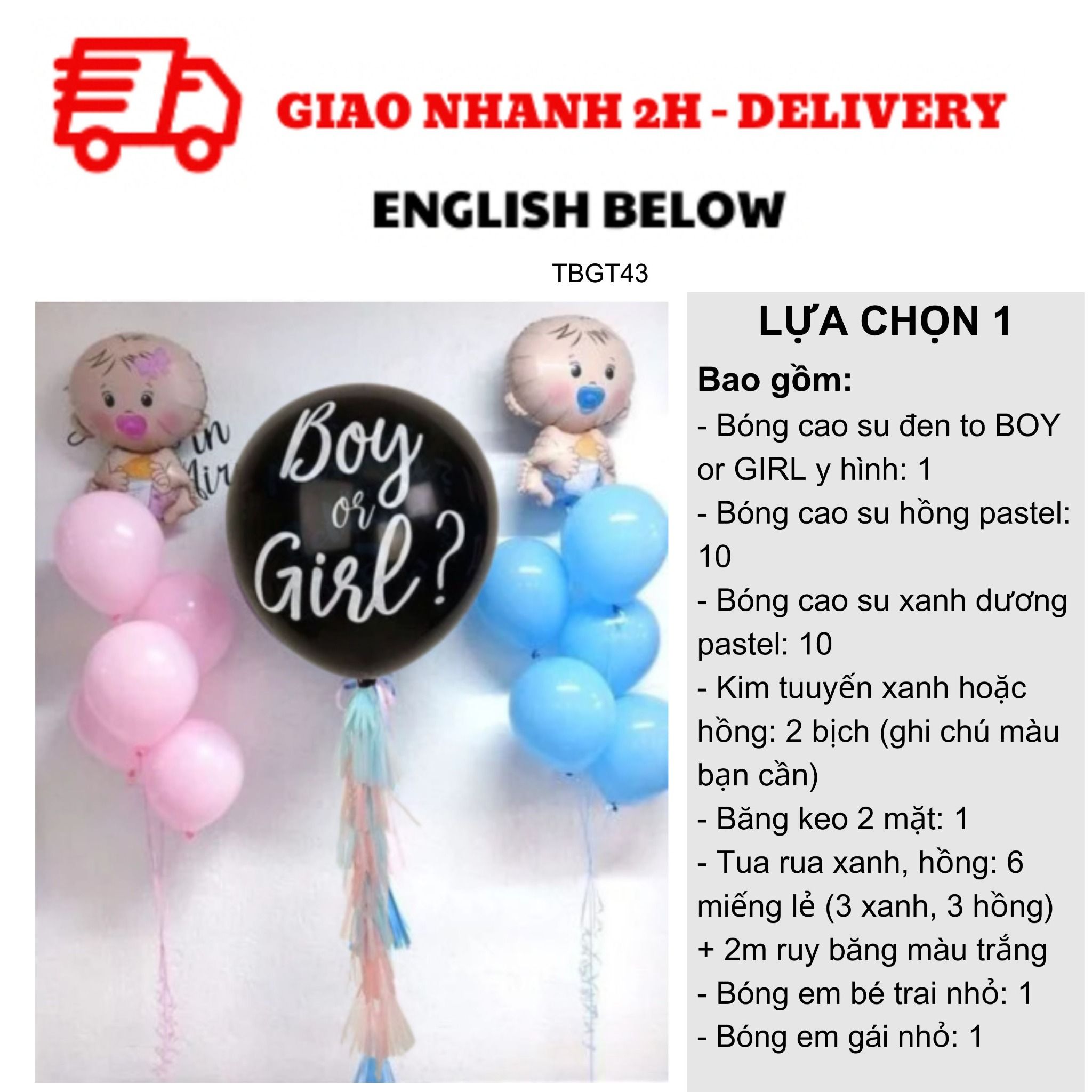 - BOY or GIRL black jumbo balloon as pictured: 1