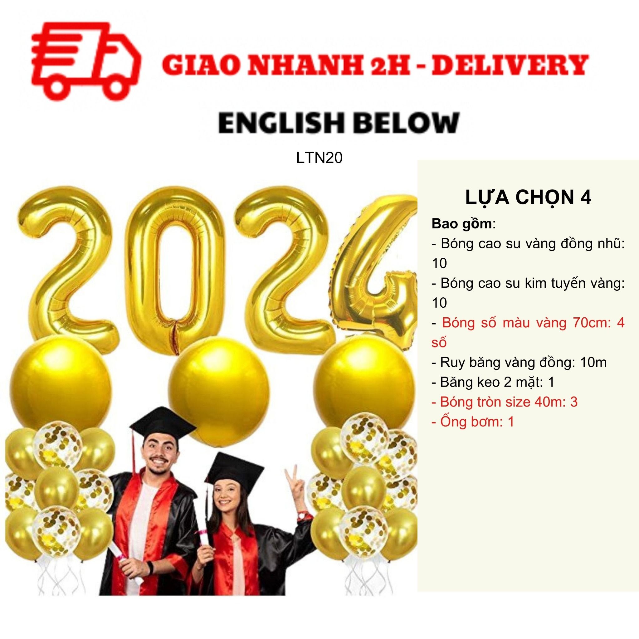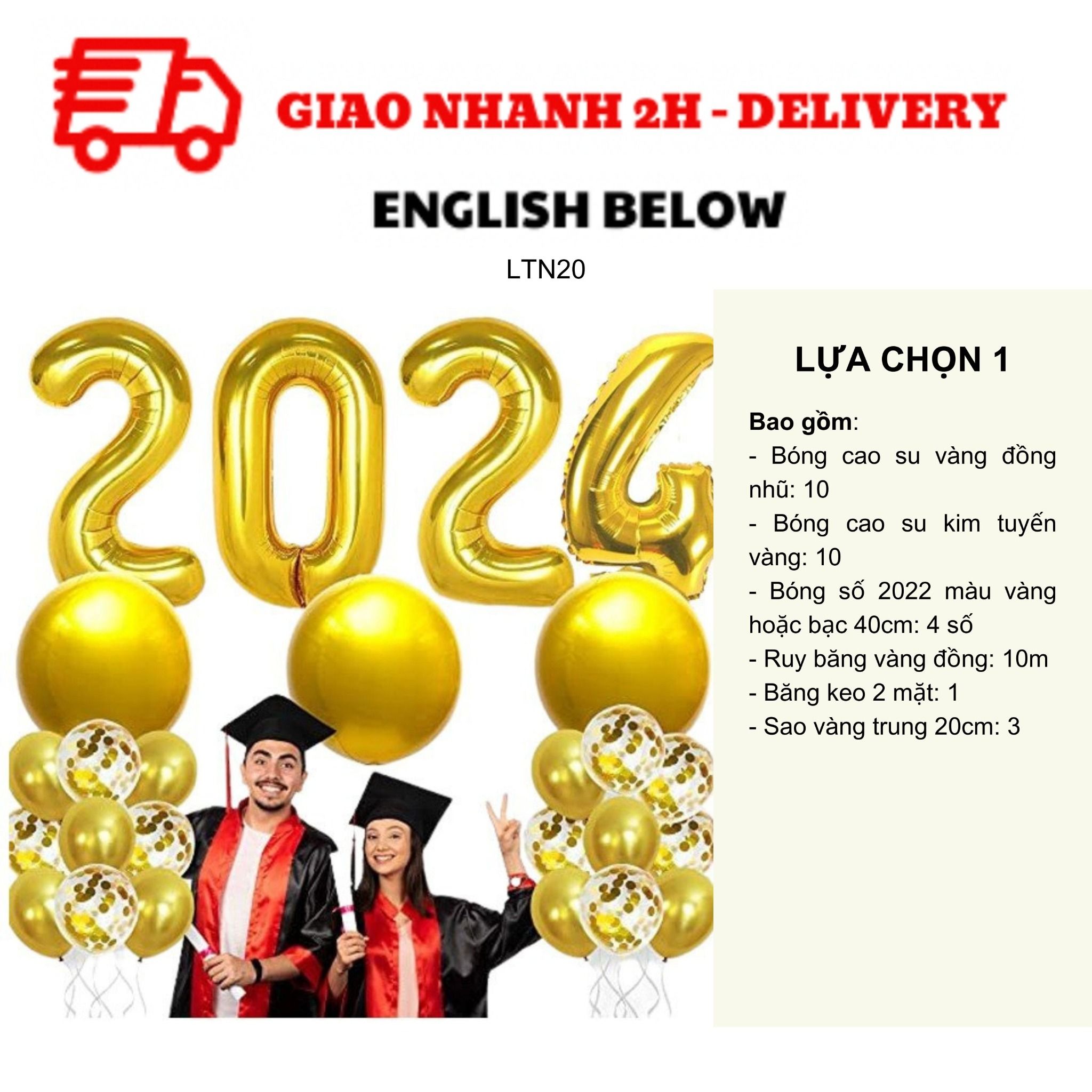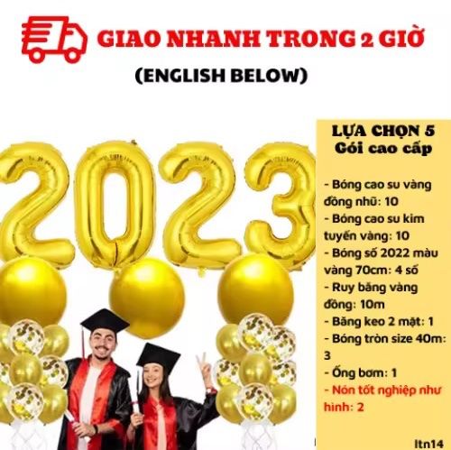- Bóng số 2022 màu vàng hoặc bạc 40cm: 4 số