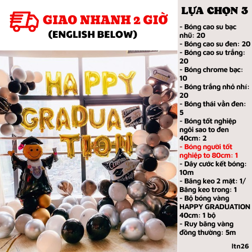 LỰA CHỌN 3: BAO GỒM LỰA CHỌN 1 NHƯNG BÓNG ĐẦU TỐT NGHIỆP NHỎ UP LÊN SIZE TO