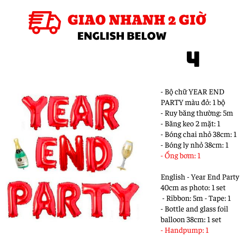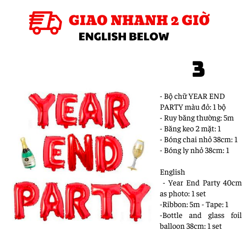 - Bộ chữ YEAR END PARTY màu đỏ: 1 bộ