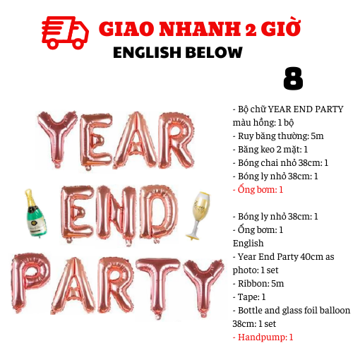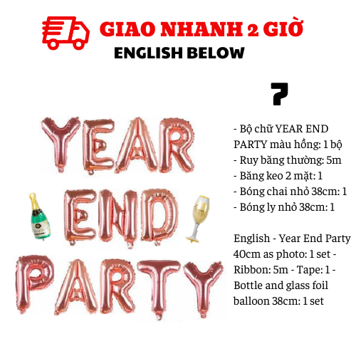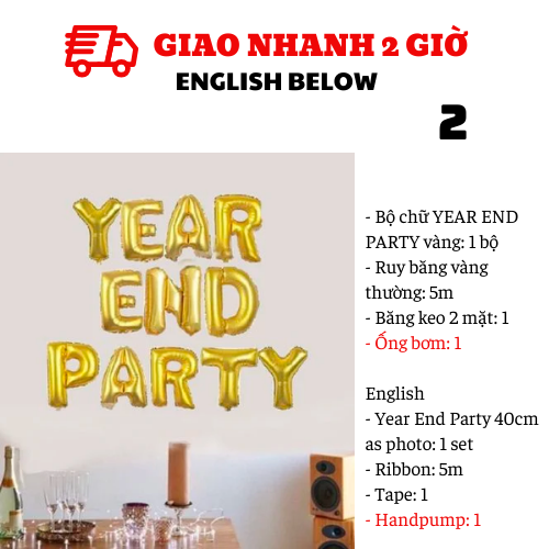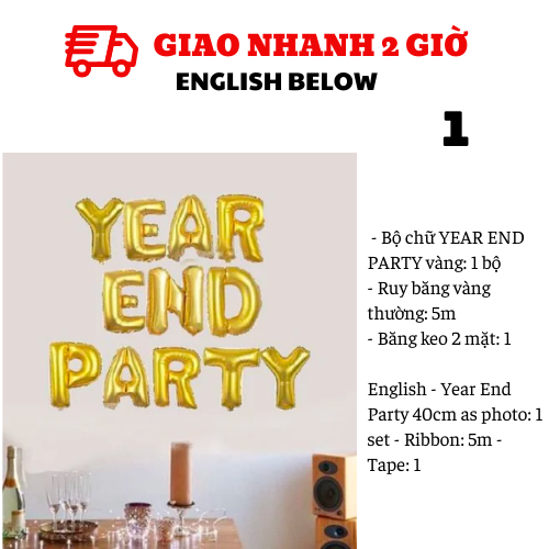 - Bộ chữ YEAR END PARTY vàng: 1 bộ