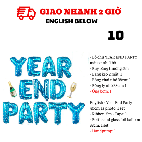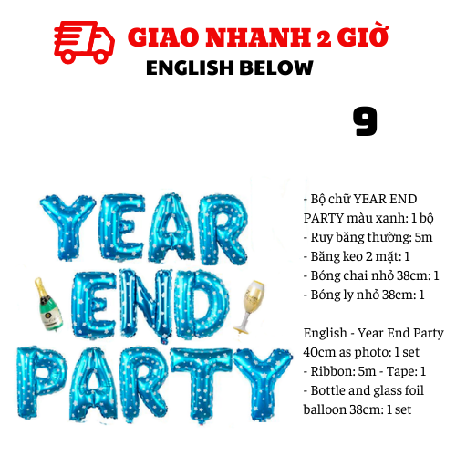 - Bộ chữ YEAR END PARTY màu xanh: 1 bộ