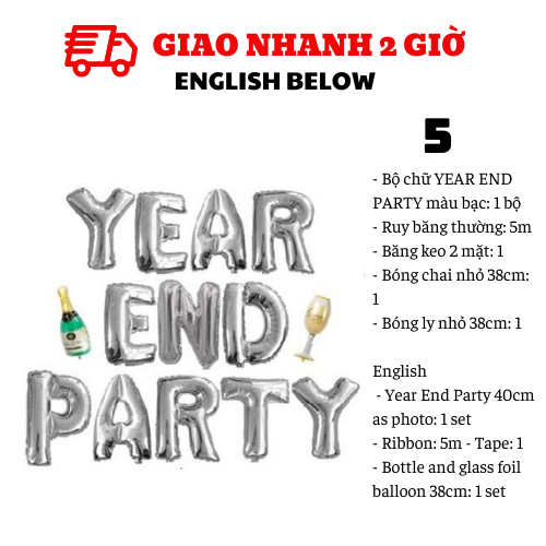 - Bộ chữ YEAR END PARTY màu bạc: 1 bộ