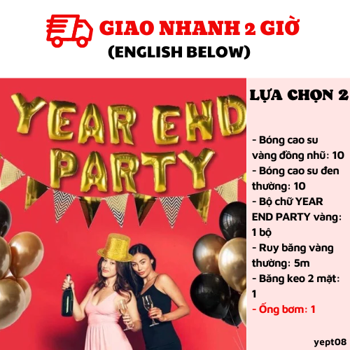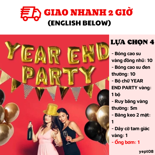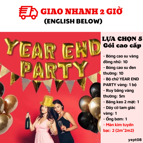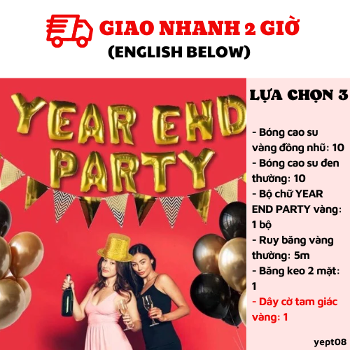 - Bộ chữ YEAR END PARTY vàng: 1 bộ