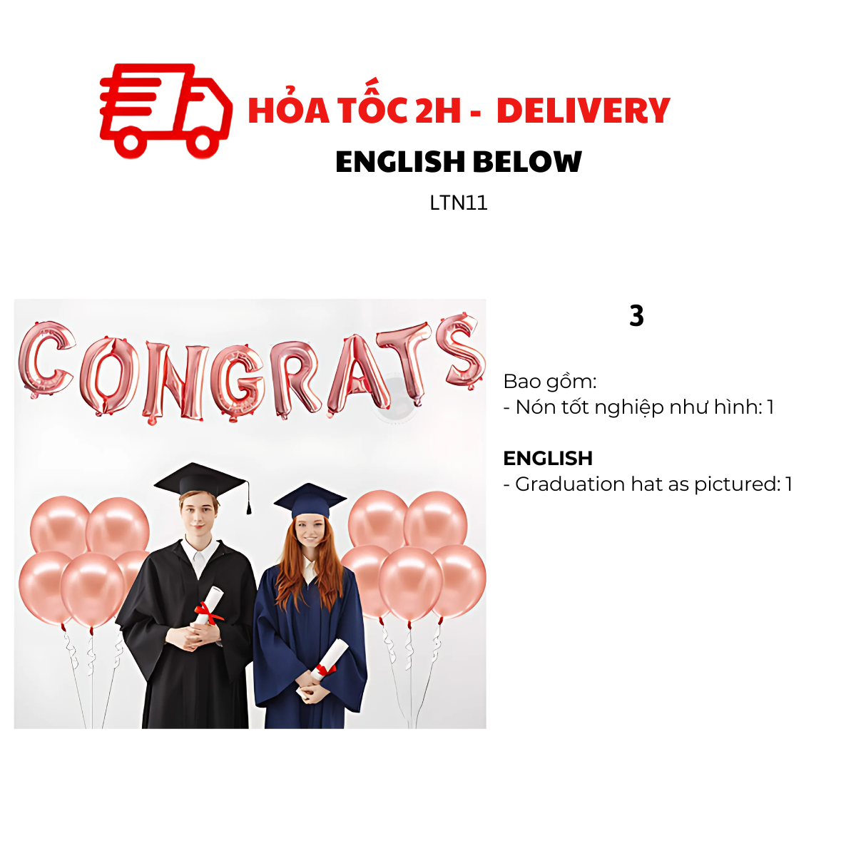 Chúc mừng ngày tốt nghiệp theo cách thật ngọt ngào với bộ bóng màu hồng dễ thương này! Tông màu nhẹ nhàng, nữ tính giúp không gian thêm phần nổi bật và ấm áp. Dù là bữa tiệc tại nhà hay trong lớp học, set bóng bay tốt nghiệp màu hồng LTN11 luôn tạo nên khung hình hoàn hảo để lưu giữ kỷ niệm đáng nhớ.