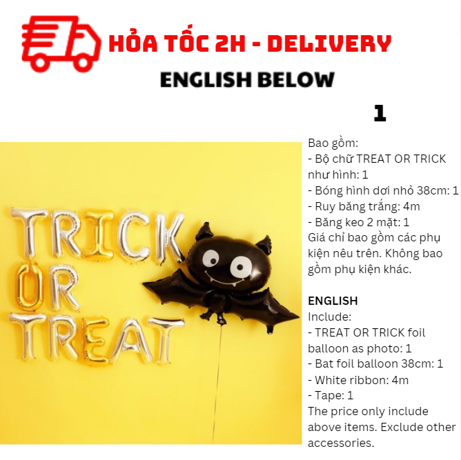 BỘ CHỮ TREAT OR TRICK VÀ BÓNG HÌNH DƠI TRANG TRÍ HALLOWEEN BBHL32