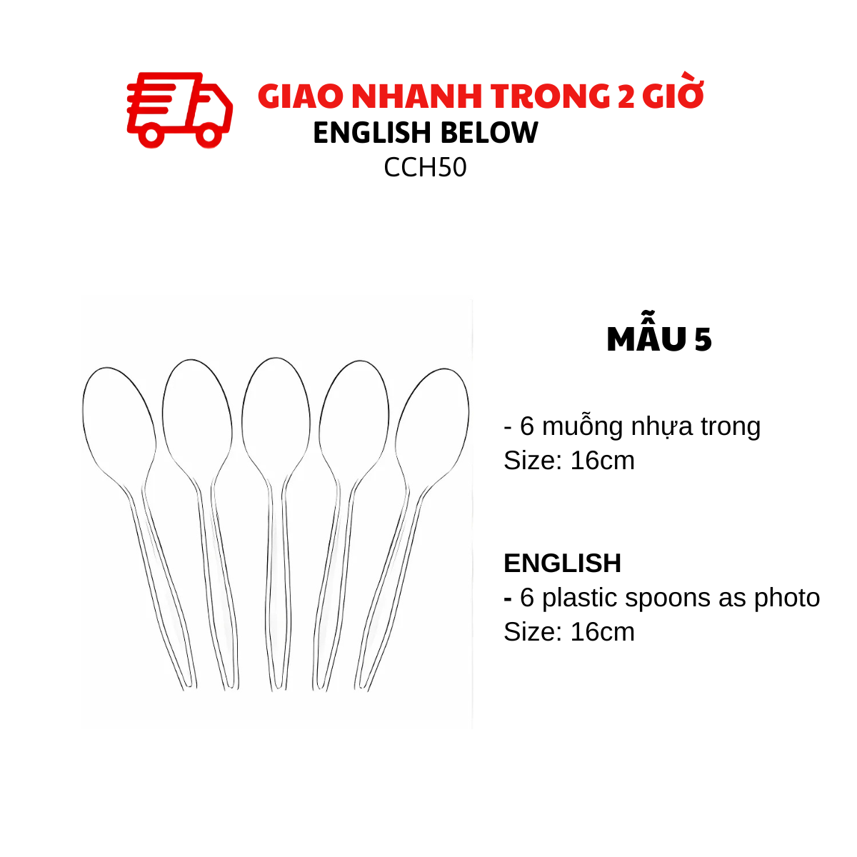 - 6 muỗng nhựa trong