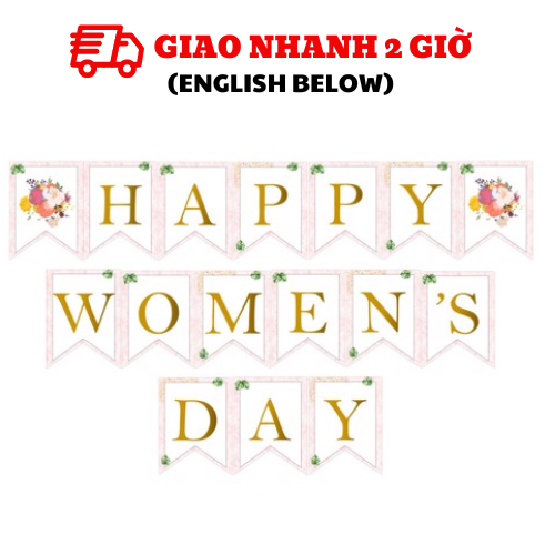 BỘ DÂY CỜ HAPPY WOMEN'S DAY MÀU TRẮNG HỒNG TRANG TRÍ NGÀY QUỐC TẾ PHỤ NỮ 8/3 WMD31