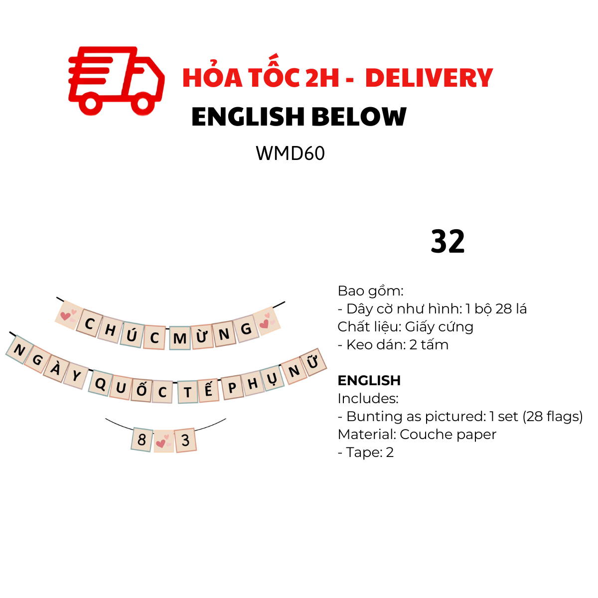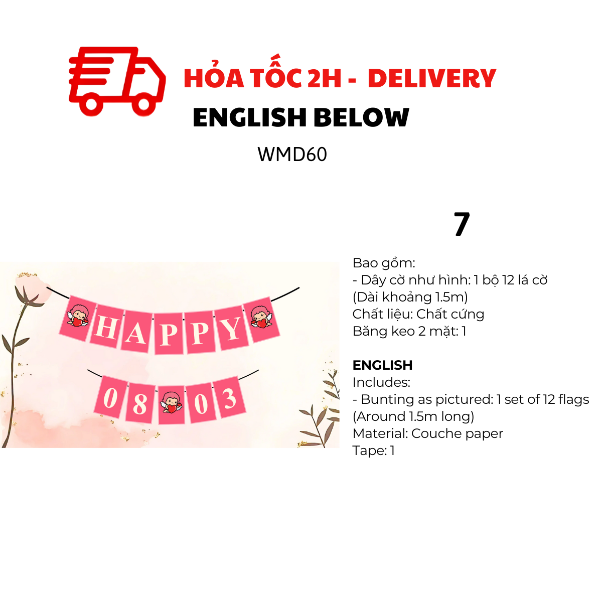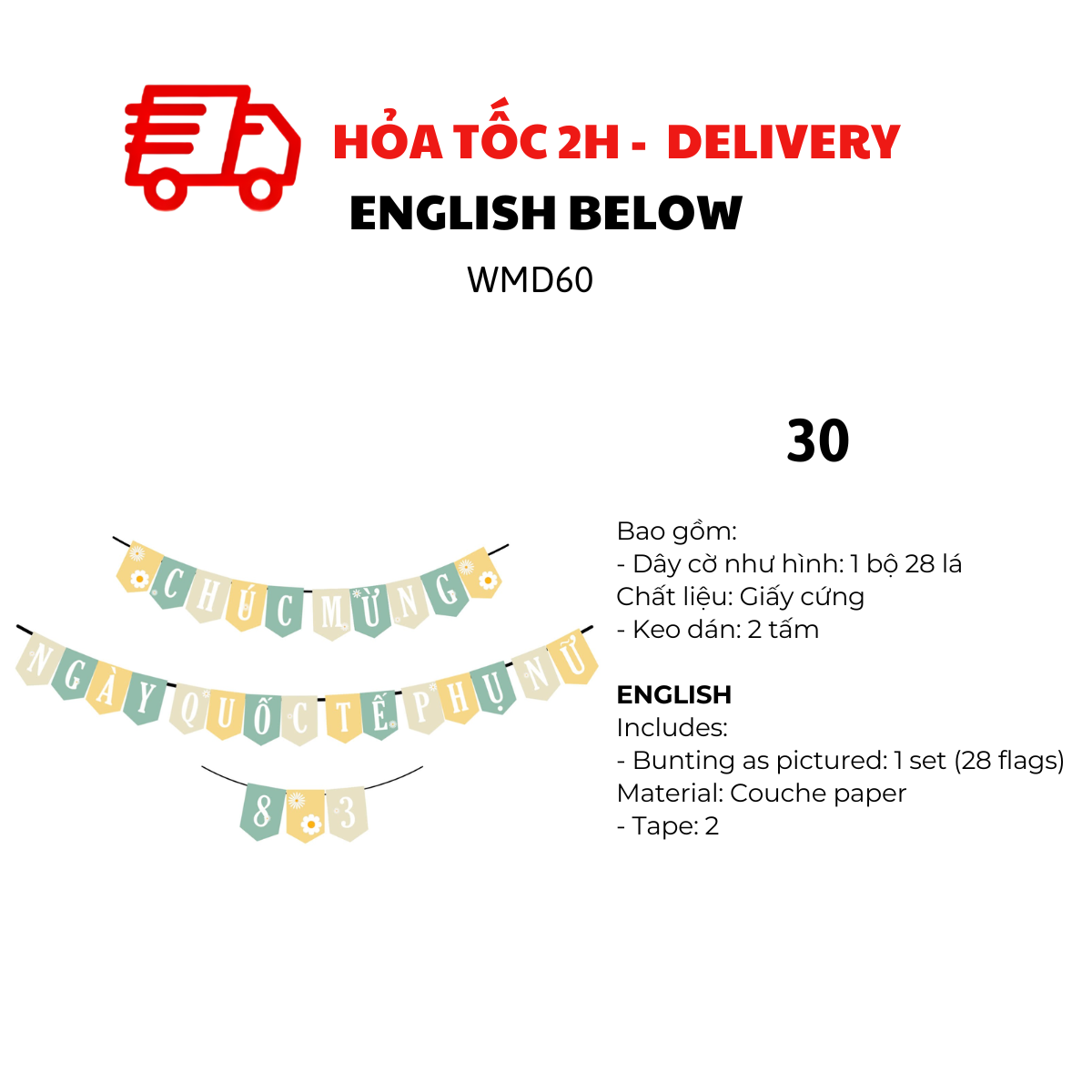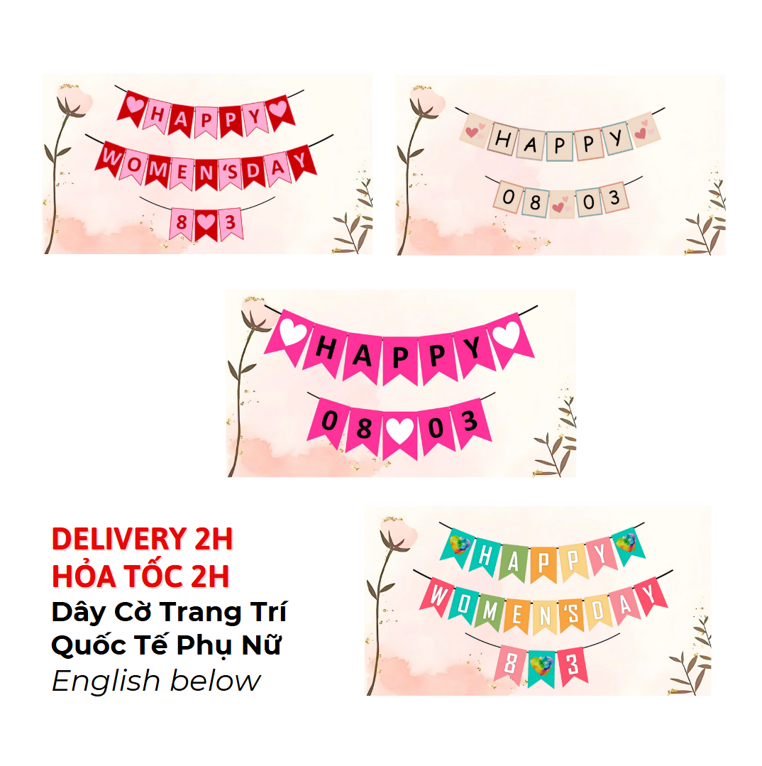 BỘ DÂY CỜ TRANG TRÍ NGÀY QUỐC TẾ PHỤ NỮ 8/3 NHIỀU MẪU WMD60