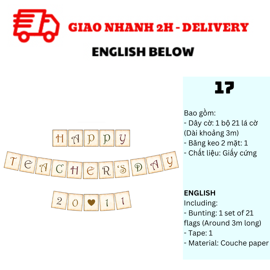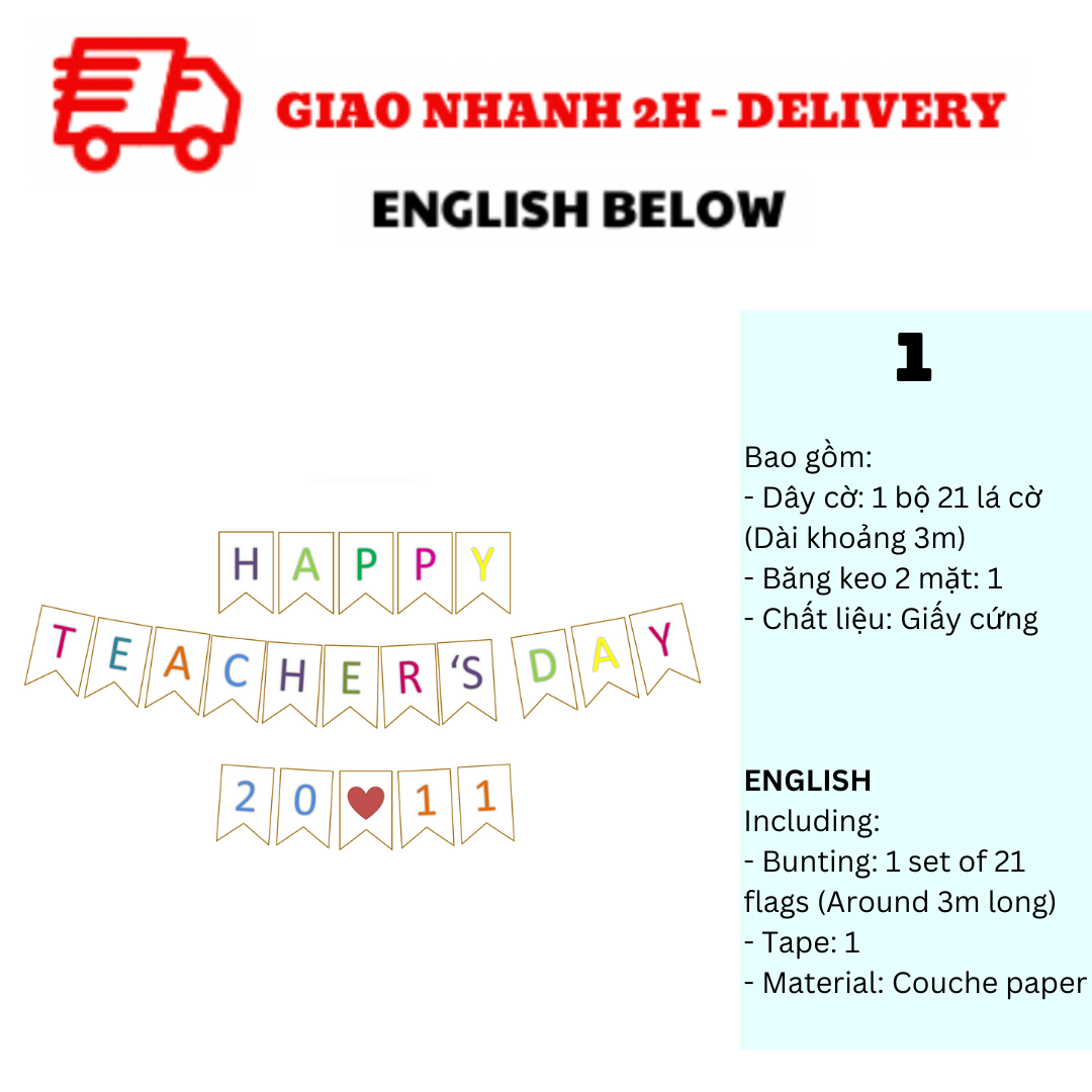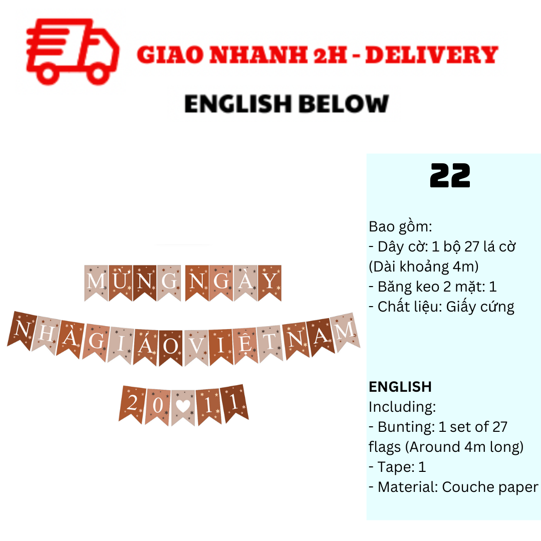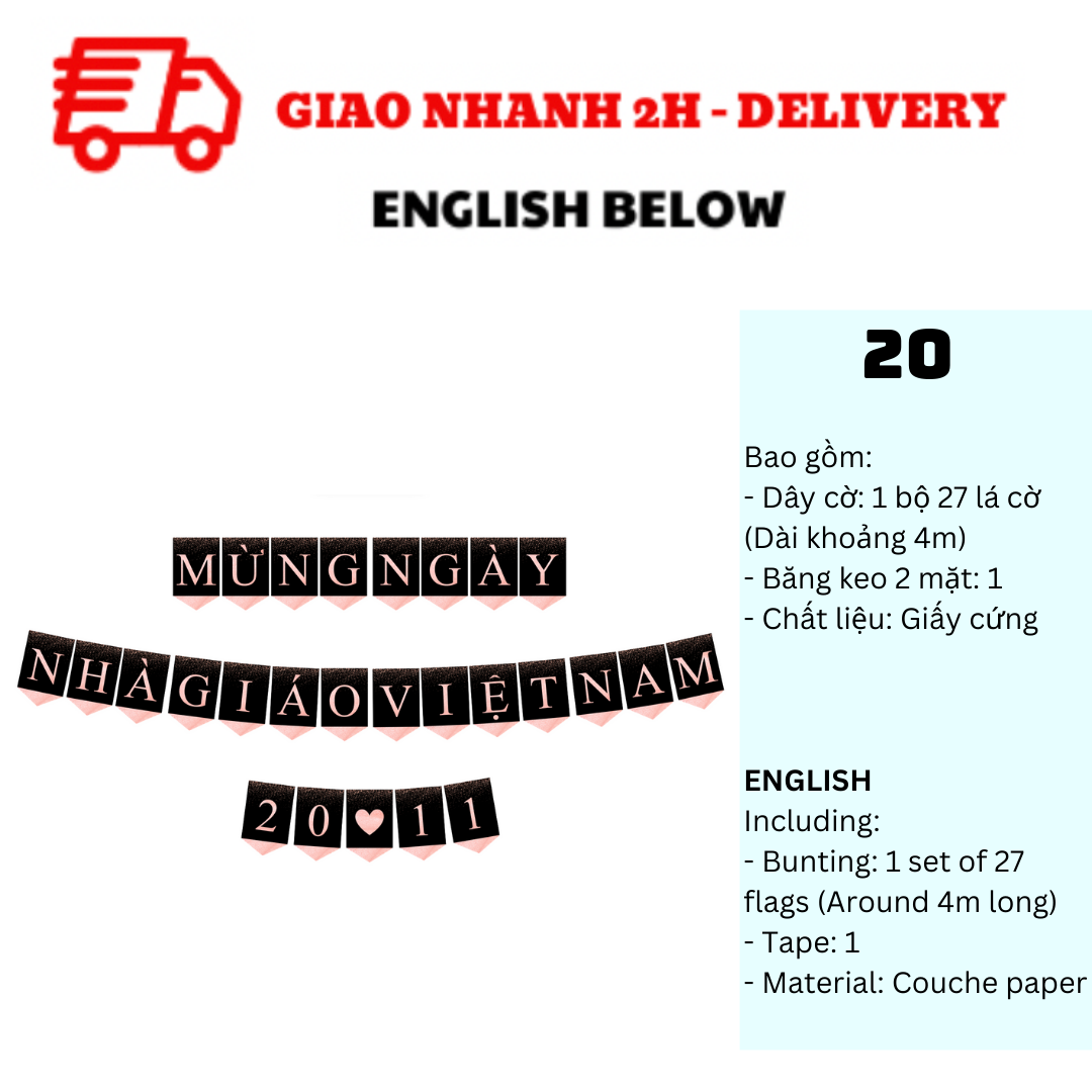 BỘ DÂY CỜ TRANG TRÍ NGÀY NHÀ GIÁO VIỆT NAM 20-11 NHIỀU MẪU - HAPPY TEACHER'S DAY 20-11 BUNTING NGVN20