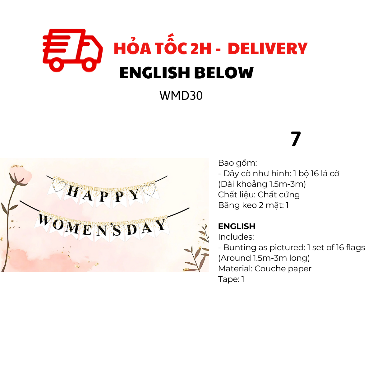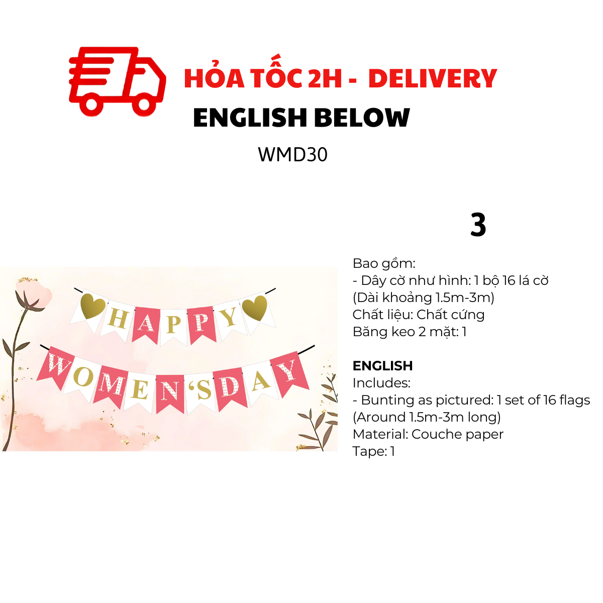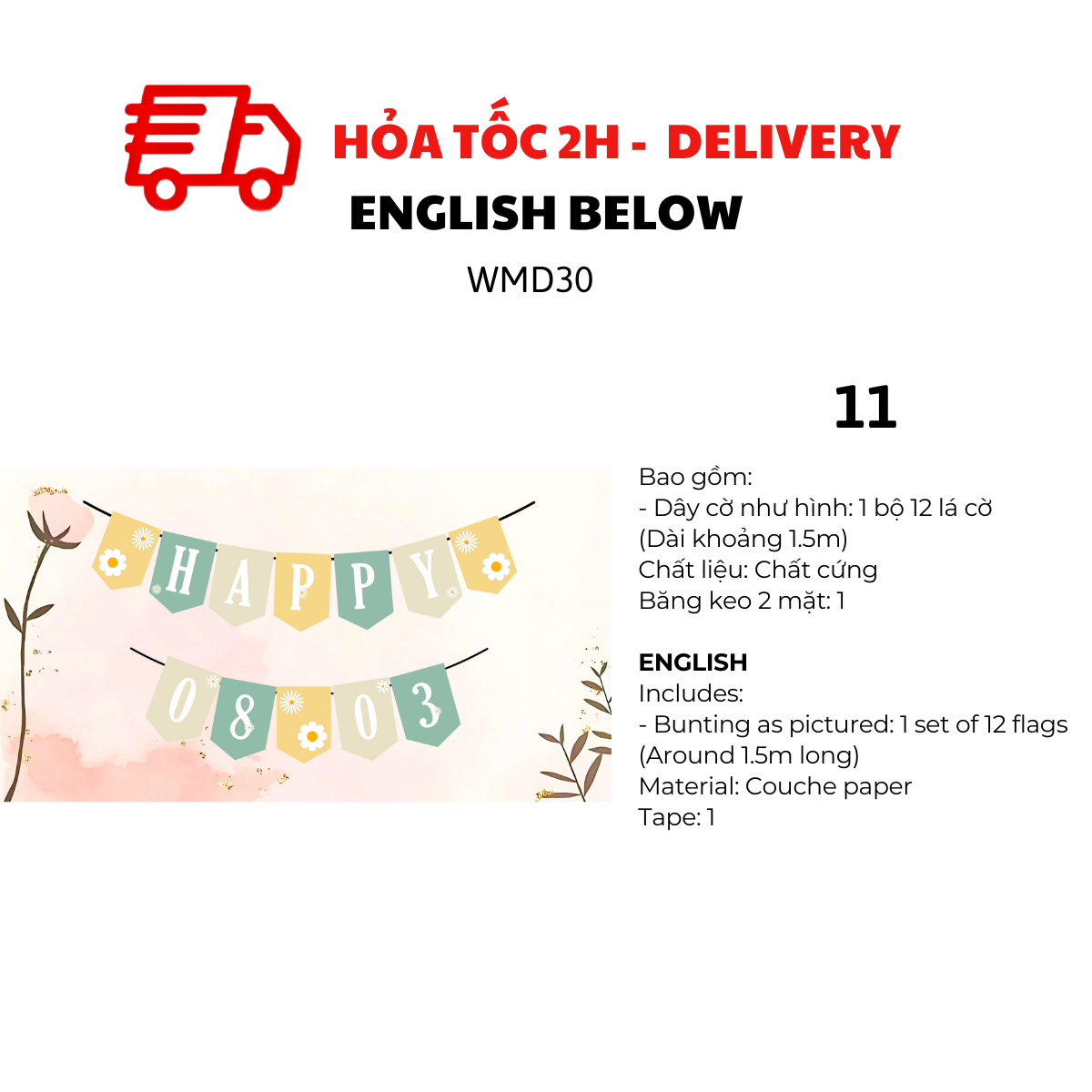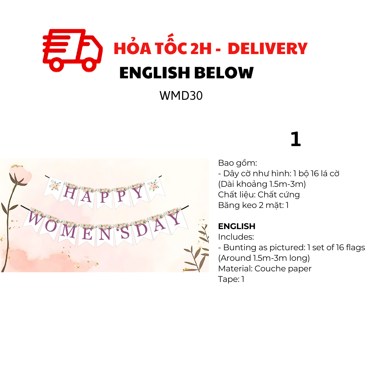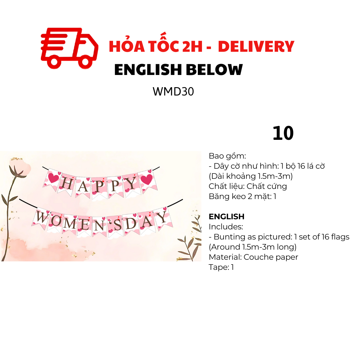 BỘ DÂY CỜ TRANG TRÍ NGÀY QUỐC TẾ PHỤ NỮ 8/3 NHIỀU MẪU WMD30