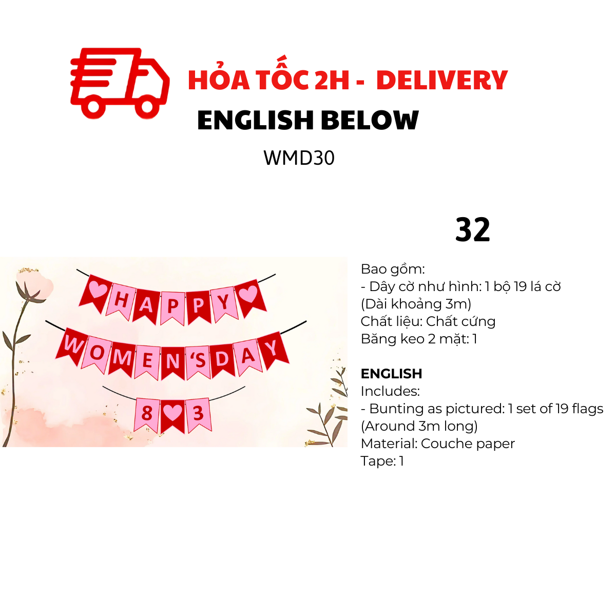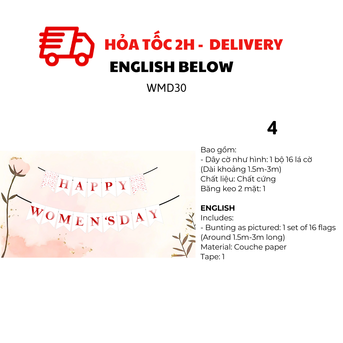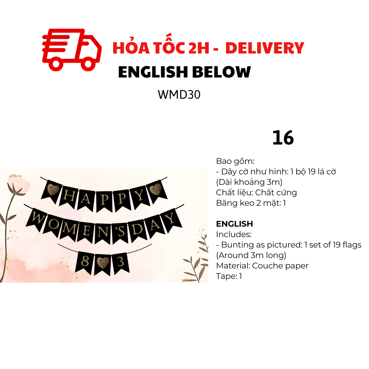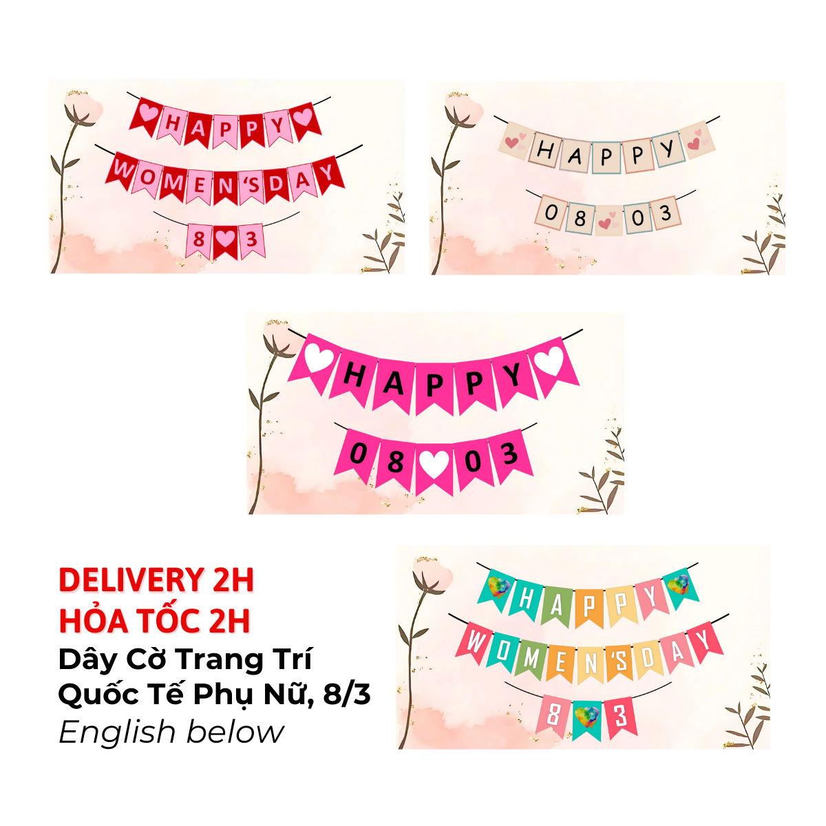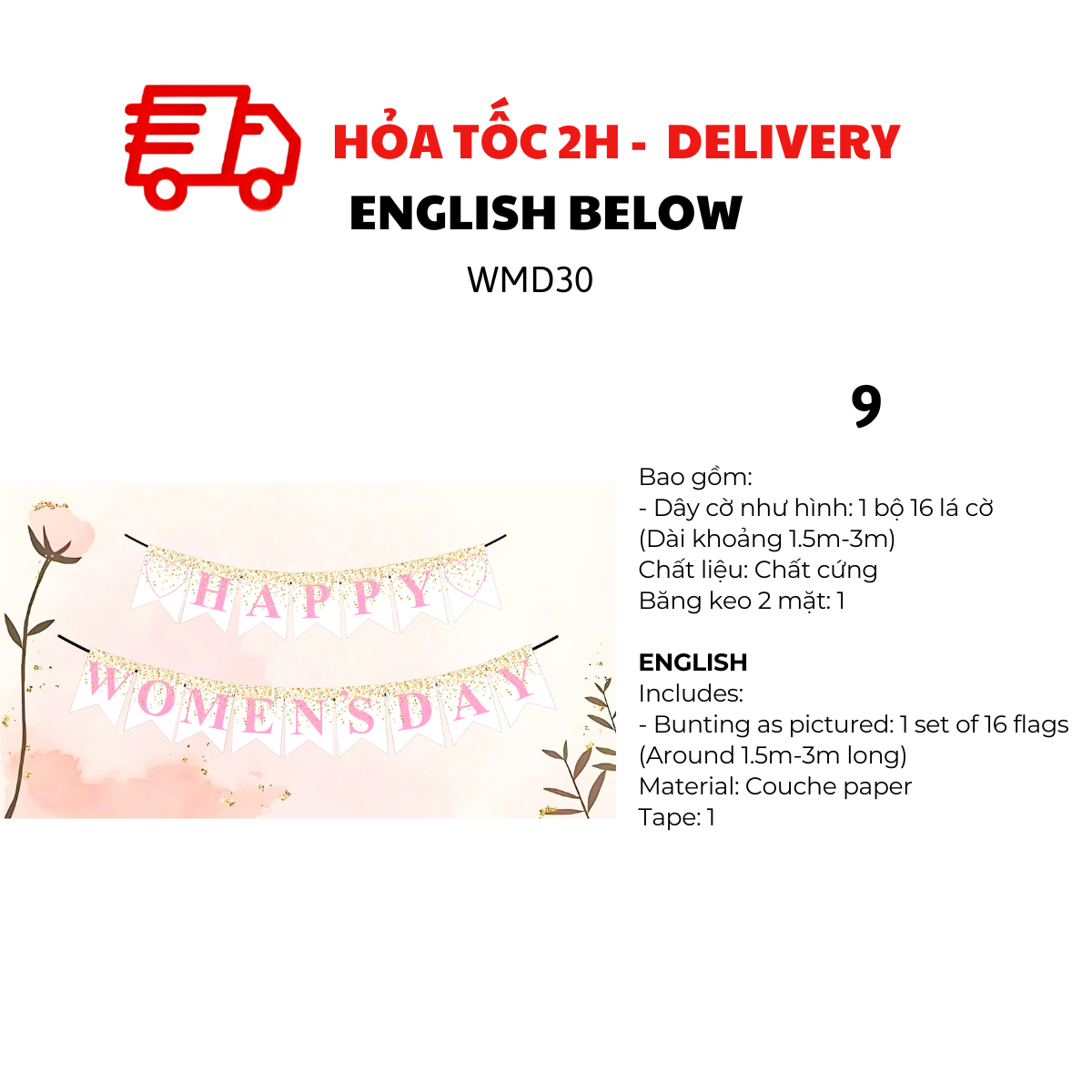 BỘ DÂY CỜ TRANG TRÍ NGÀY QUỐC TẾ PHỤ NỮ 8/3 NHIỀU MẪU WMD30