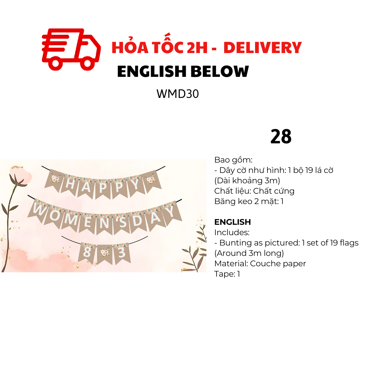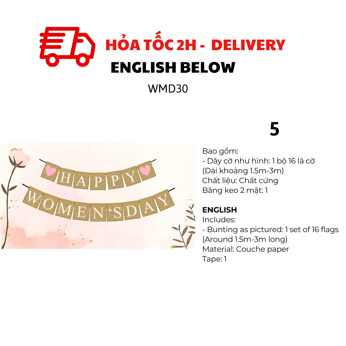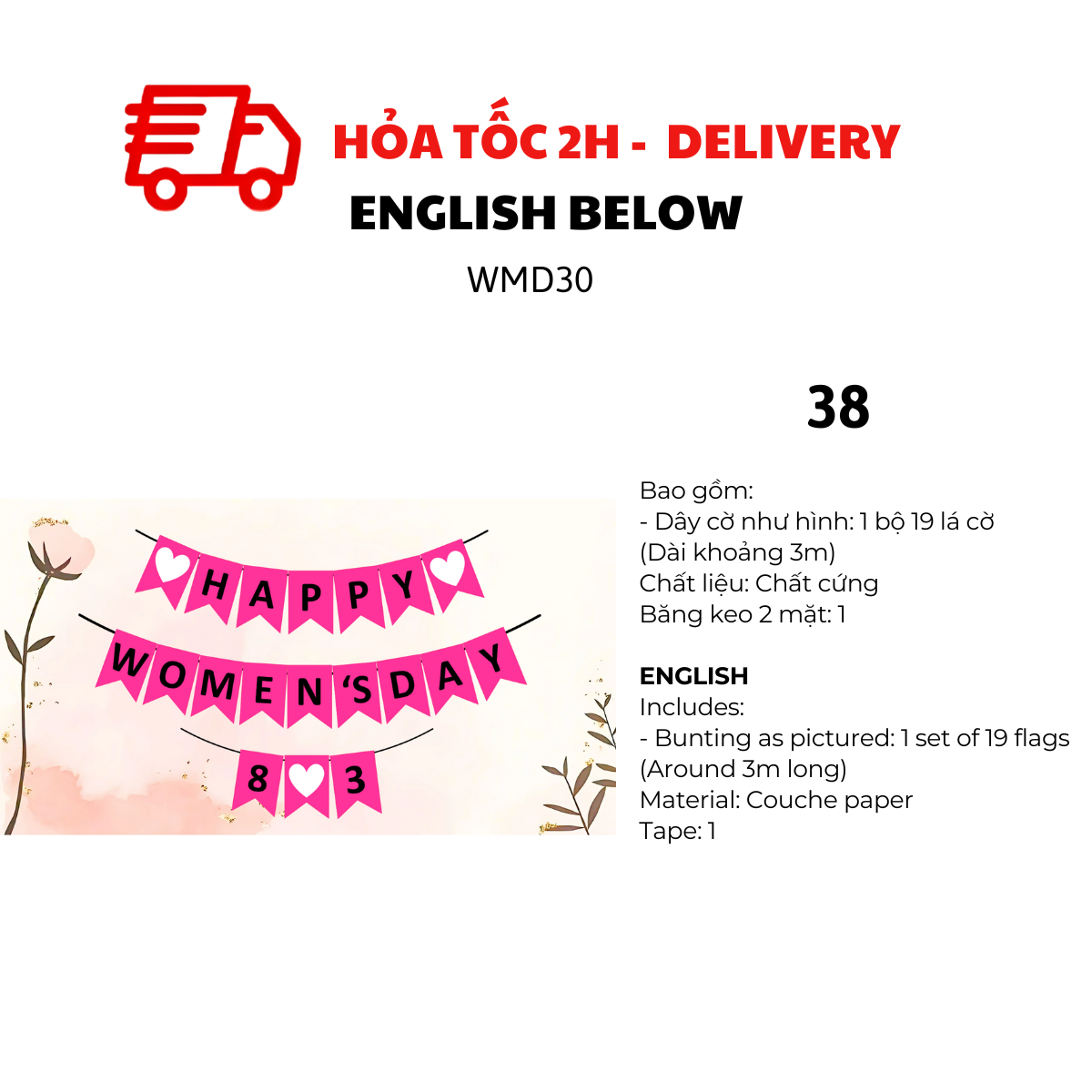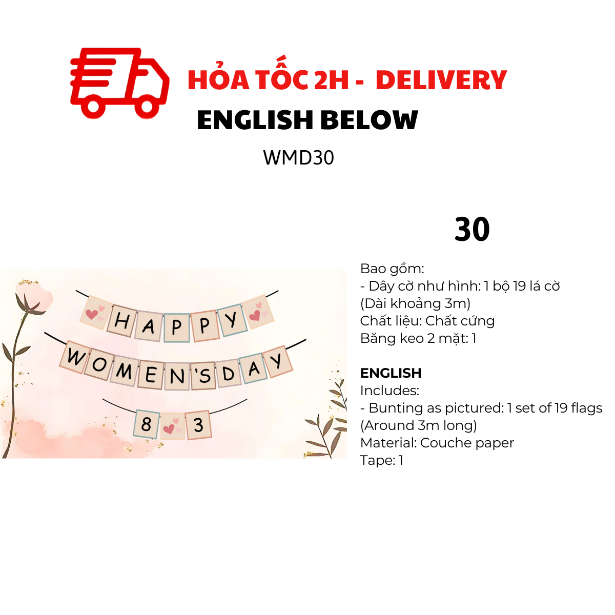 BỘ DÂY CỜ TRANG TRÍ NGÀY QUỐC TẾ PHỤ NỮ 8/3 NHIỀU MẪU WMD30