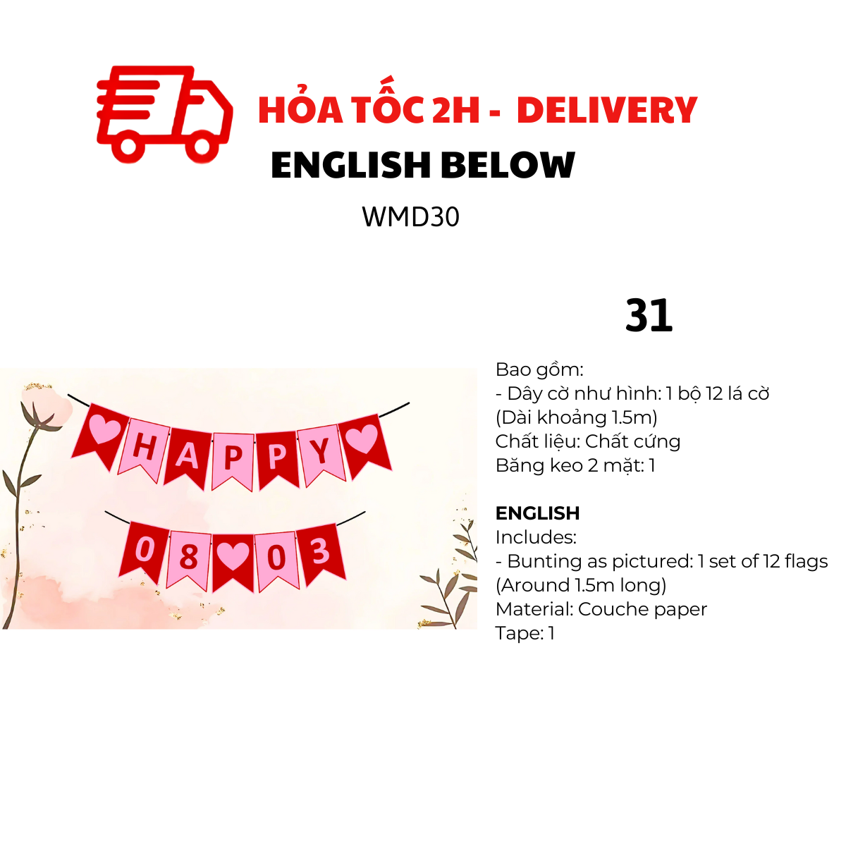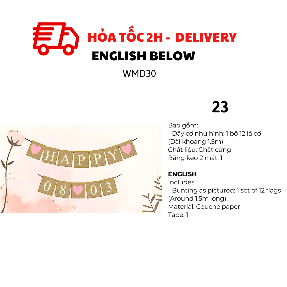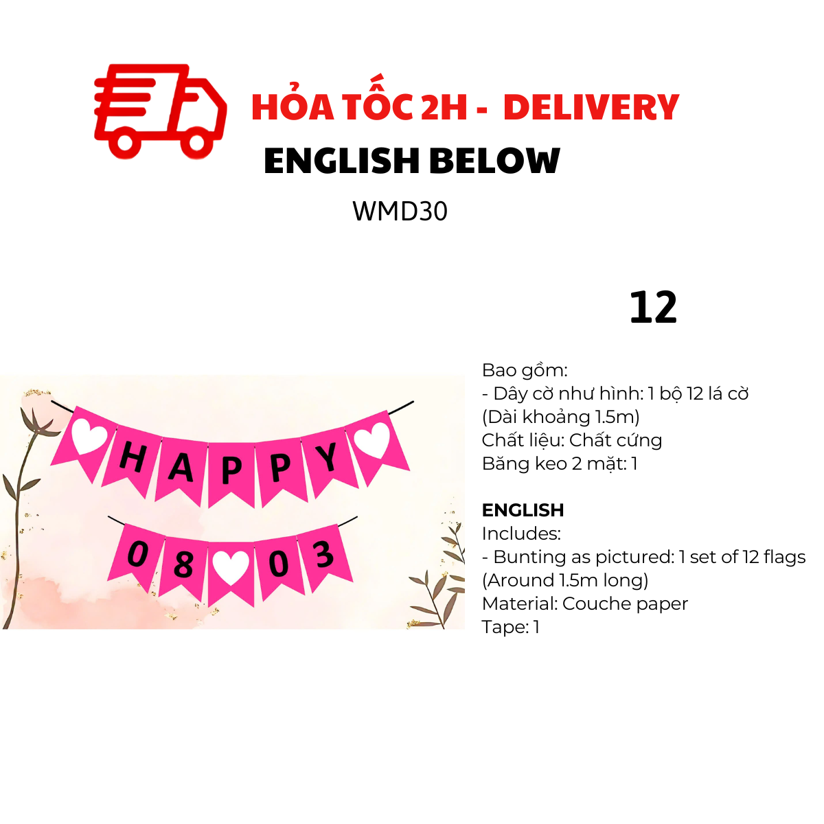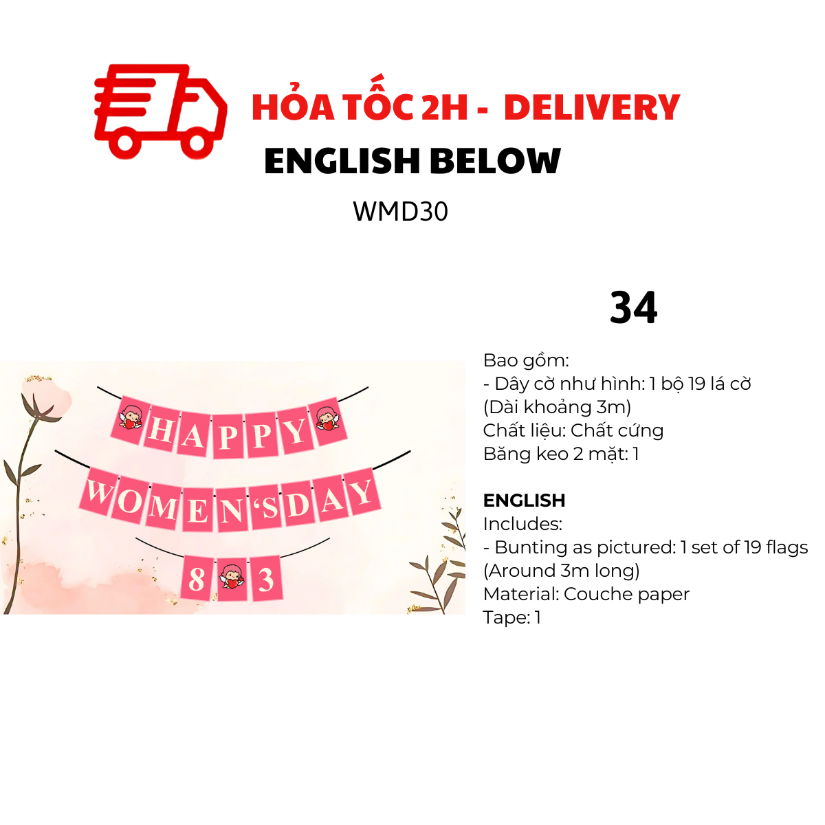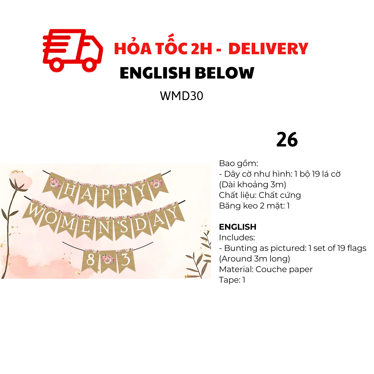 BỘ DÂY CỜ TRANG TRÍ NGÀY QUỐC TẾ PHỤ NỮ 8/3 NHIỀU MẪU WMD30