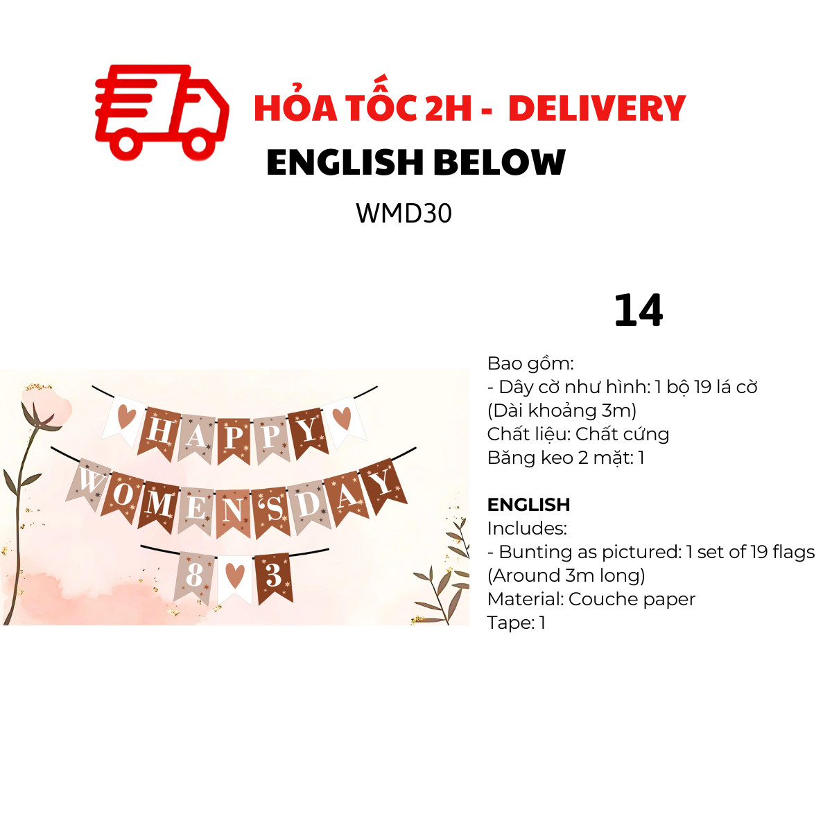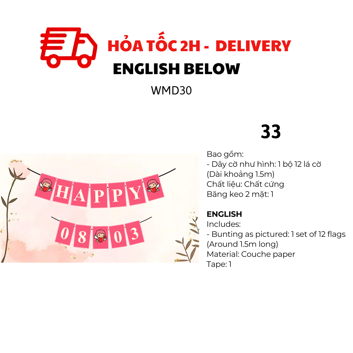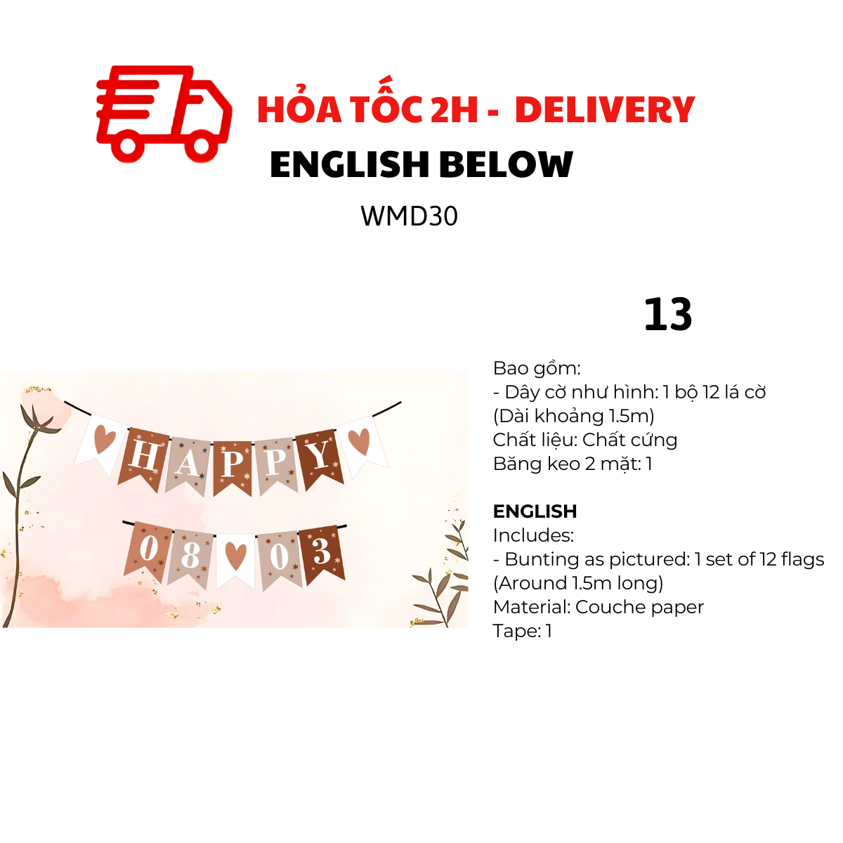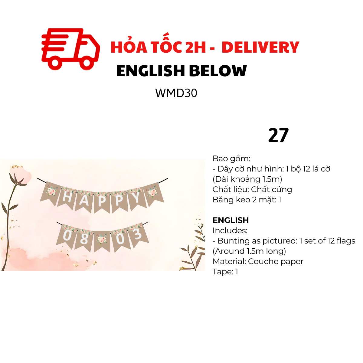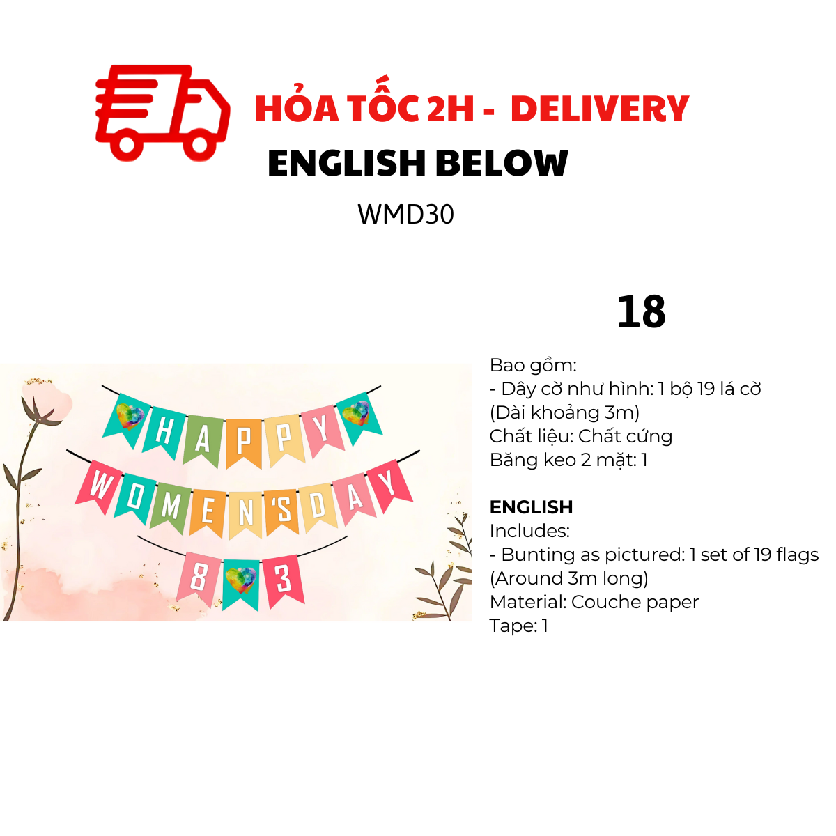 BỘ DÂY CỜ TRANG TRÍ NGÀY QUỐC TẾ PHỤ NỮ 8/3 NHIỀU MẪU WMD30