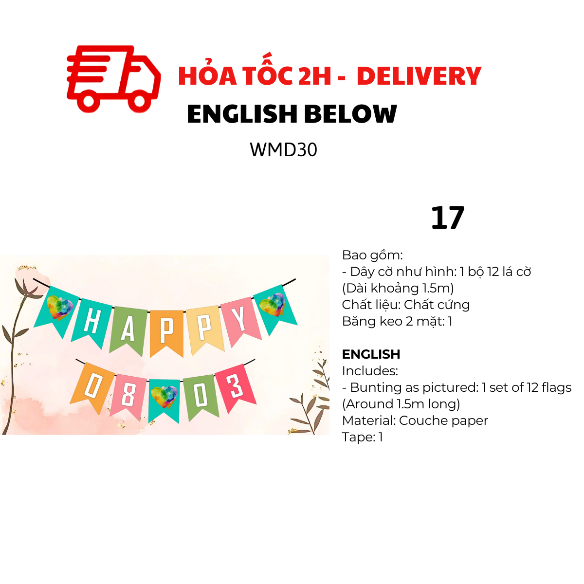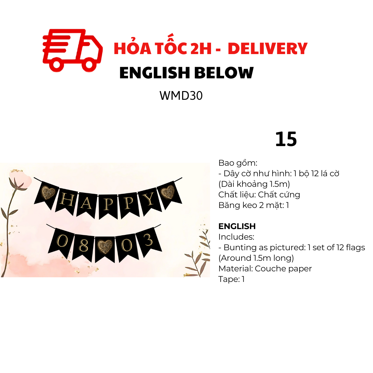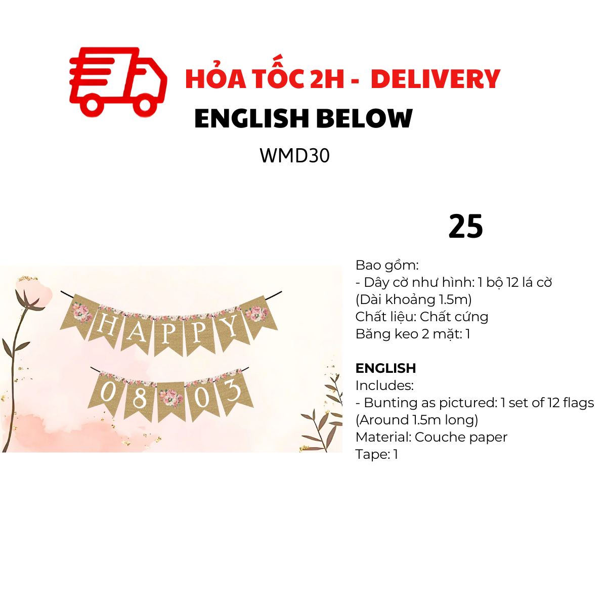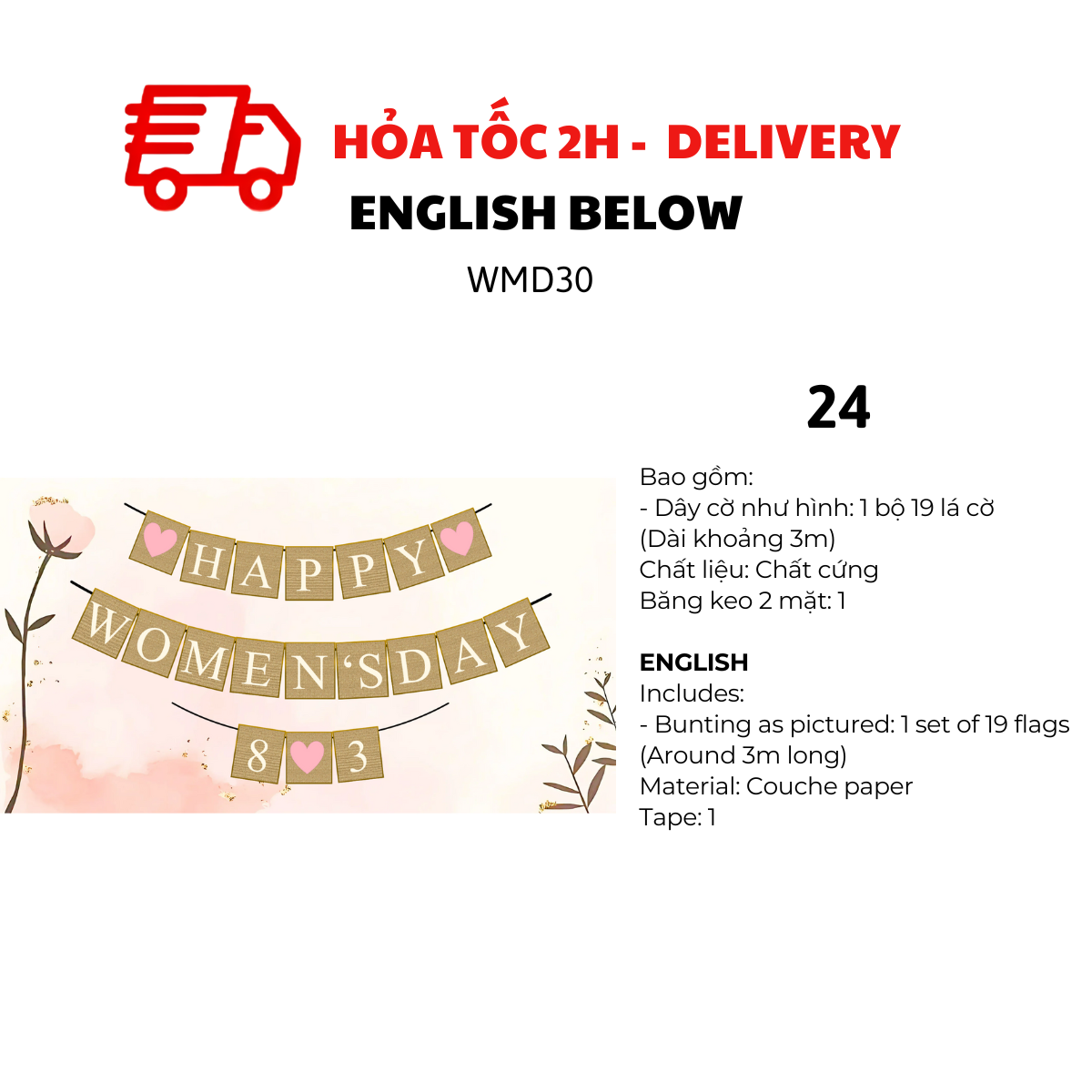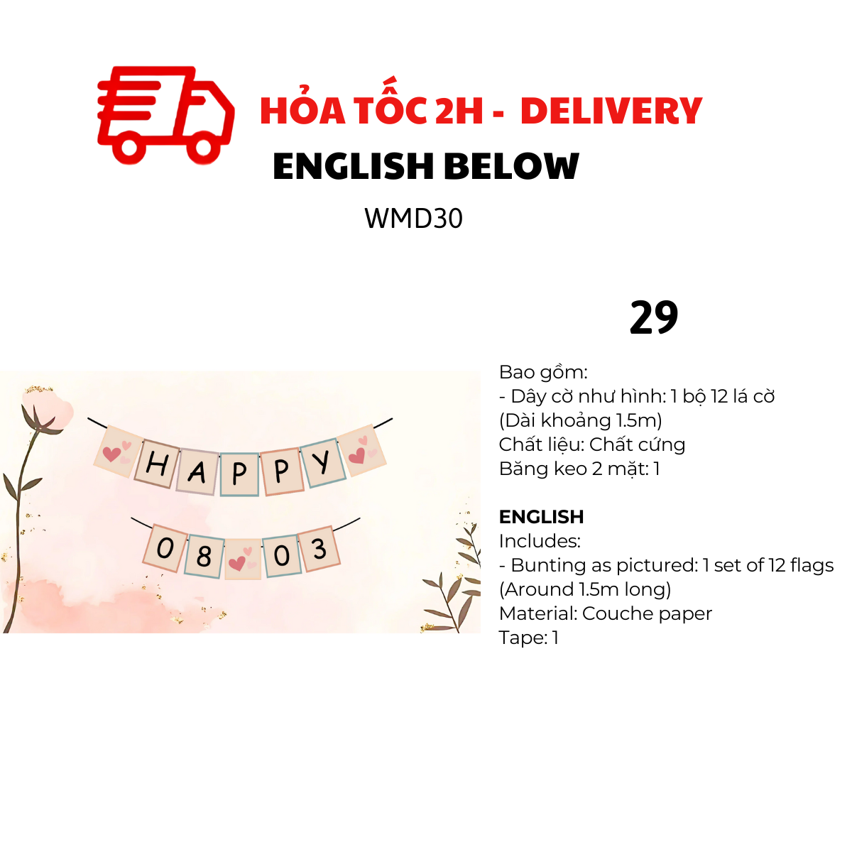 BỘ DÂY CỜ TRANG TRÍ NGÀY QUỐC TẾ PHỤ NỮ 8/3 NHIỀU MẪU WMD30