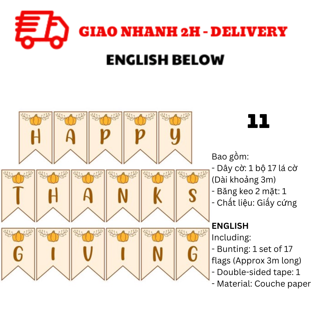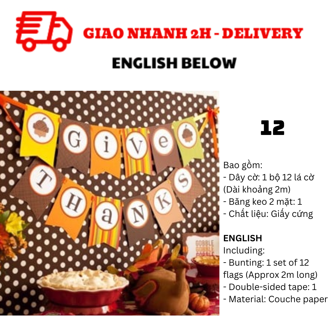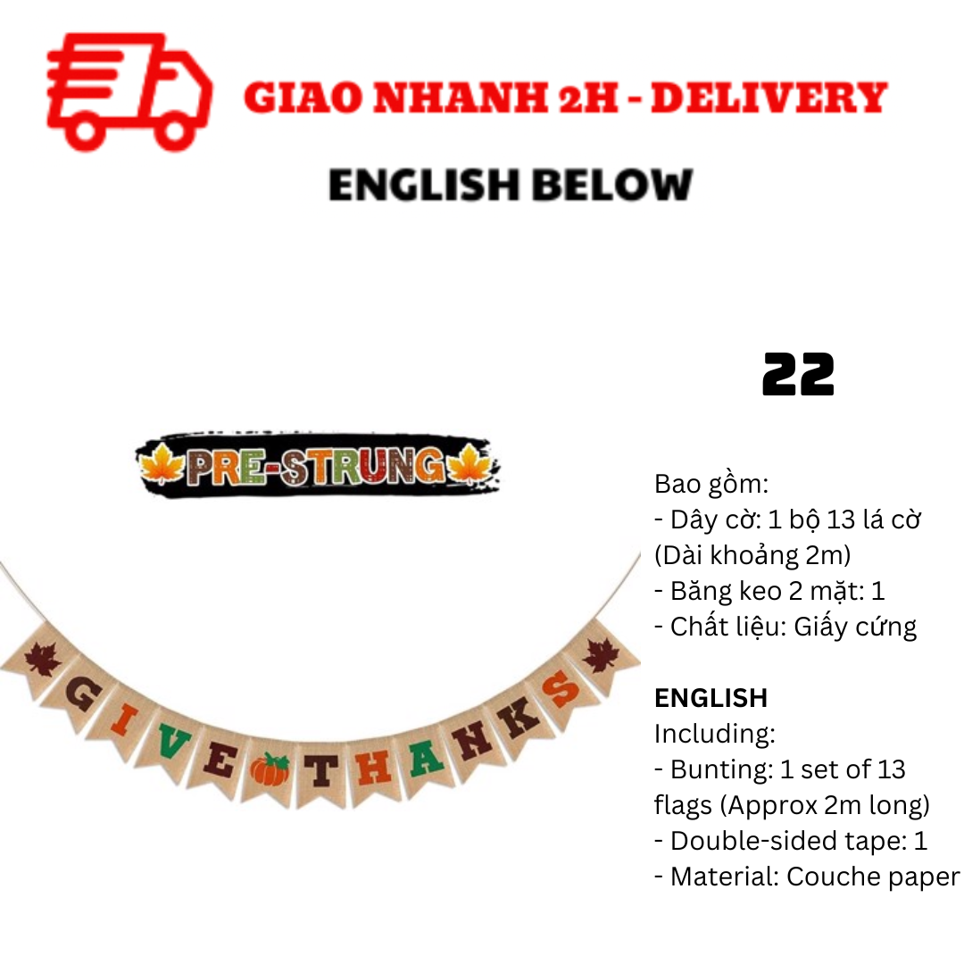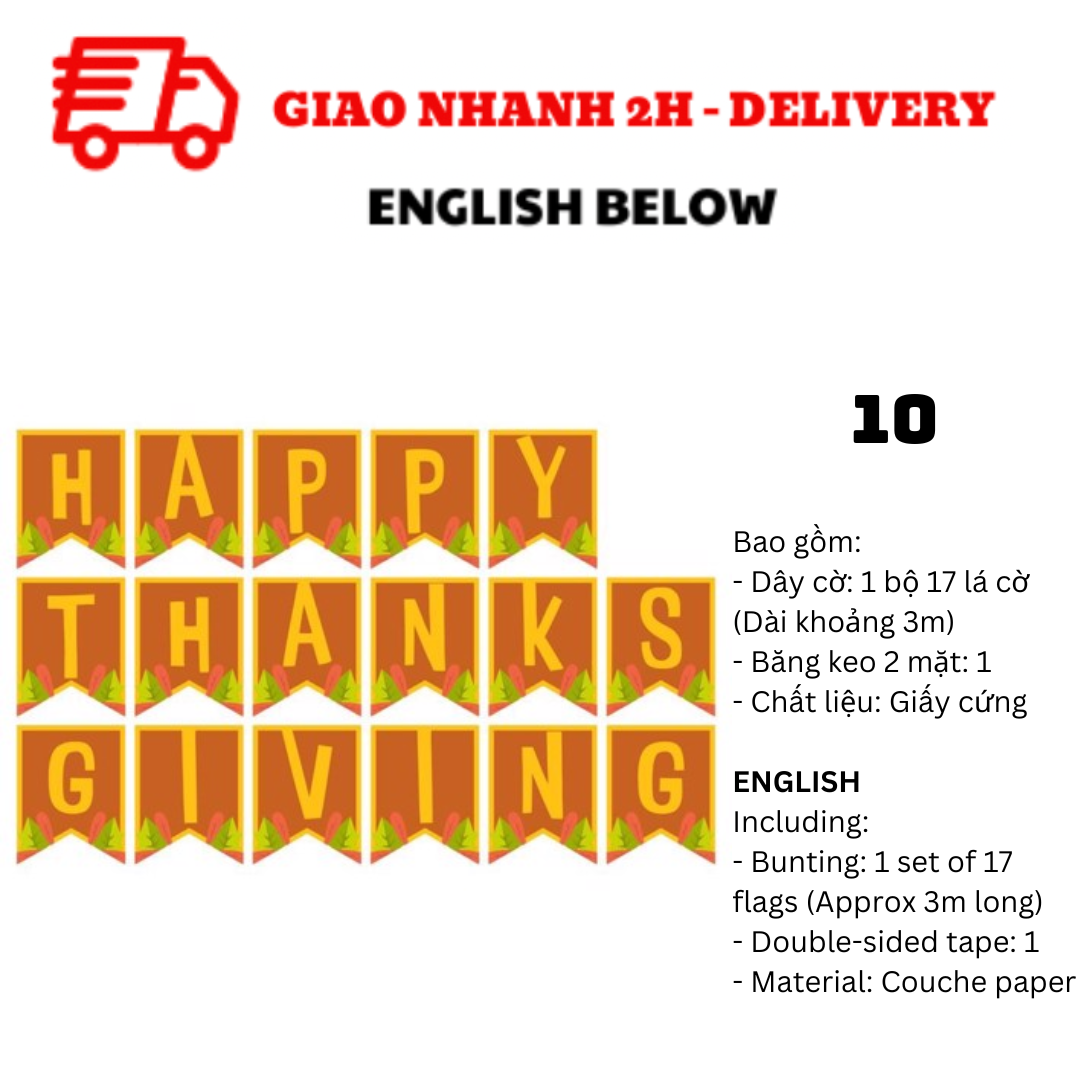 BỘ DÂY CỜ TRANG TRÍ TIỆC LỄ TẠ ƠN THANKSGIVING BUNTING TGV01