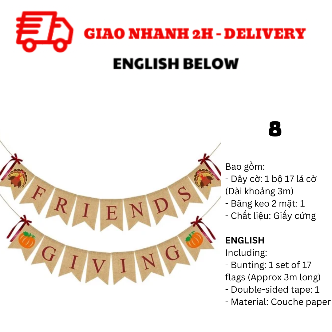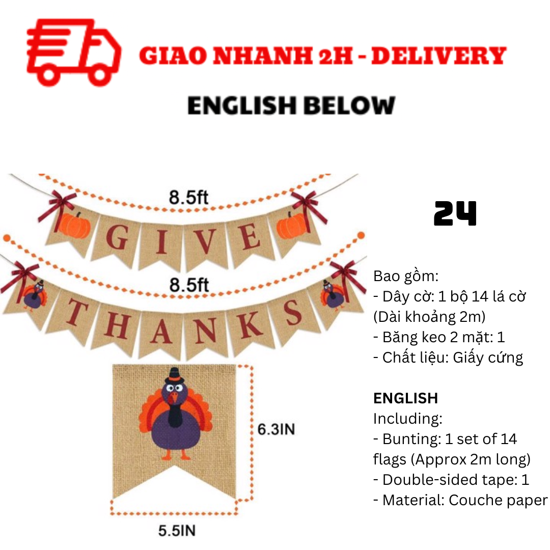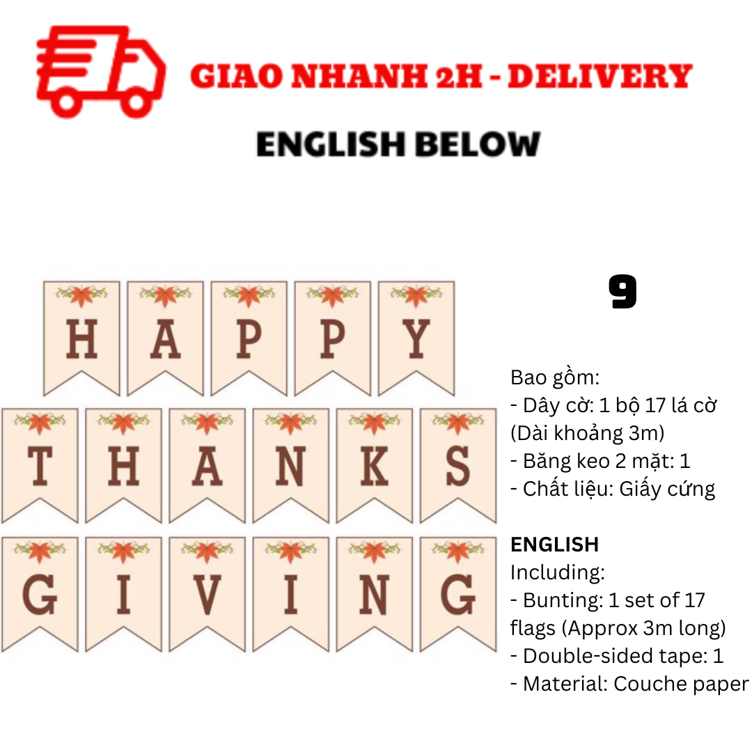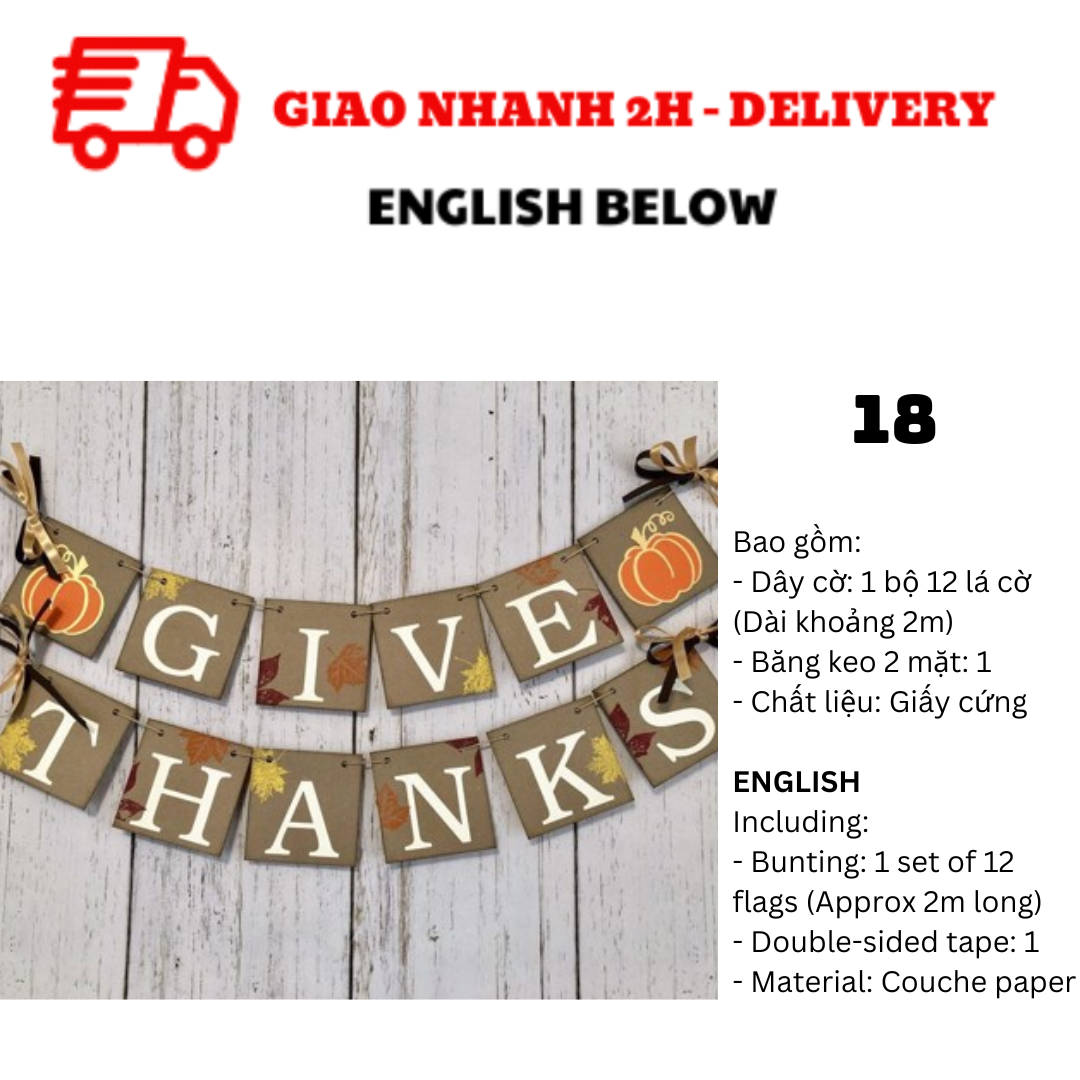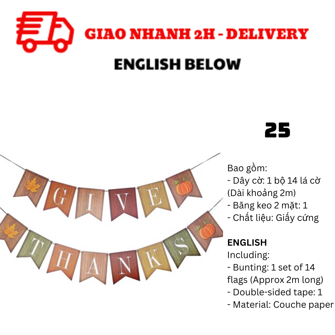 BỘ DÂY CỜ TRANG TRÍ TIỆC LỄ TẠ ƠN THANKSGIVING BUNTING TGV01