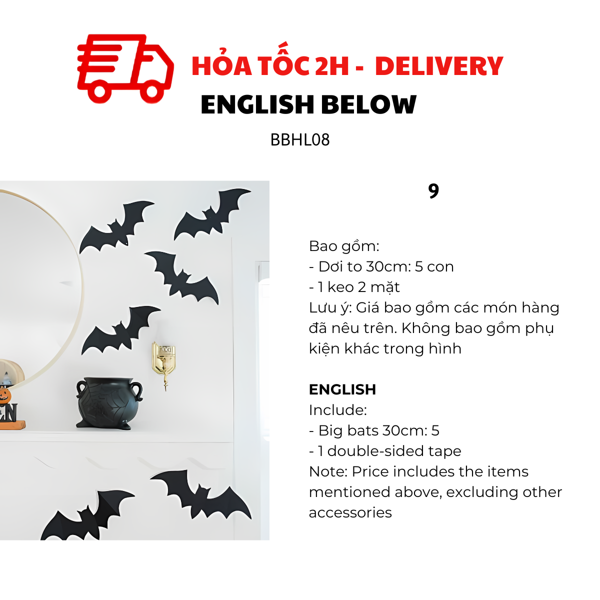 - 10 dơi size to nhỏ như hình (size 25cm, 20cm, 12cm, 8cm)