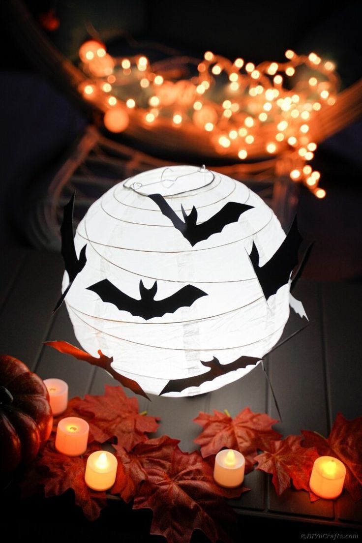 WHITE LANTERN AND BATS COMBO FOR HALLOWEEN DECORATION BBHL133