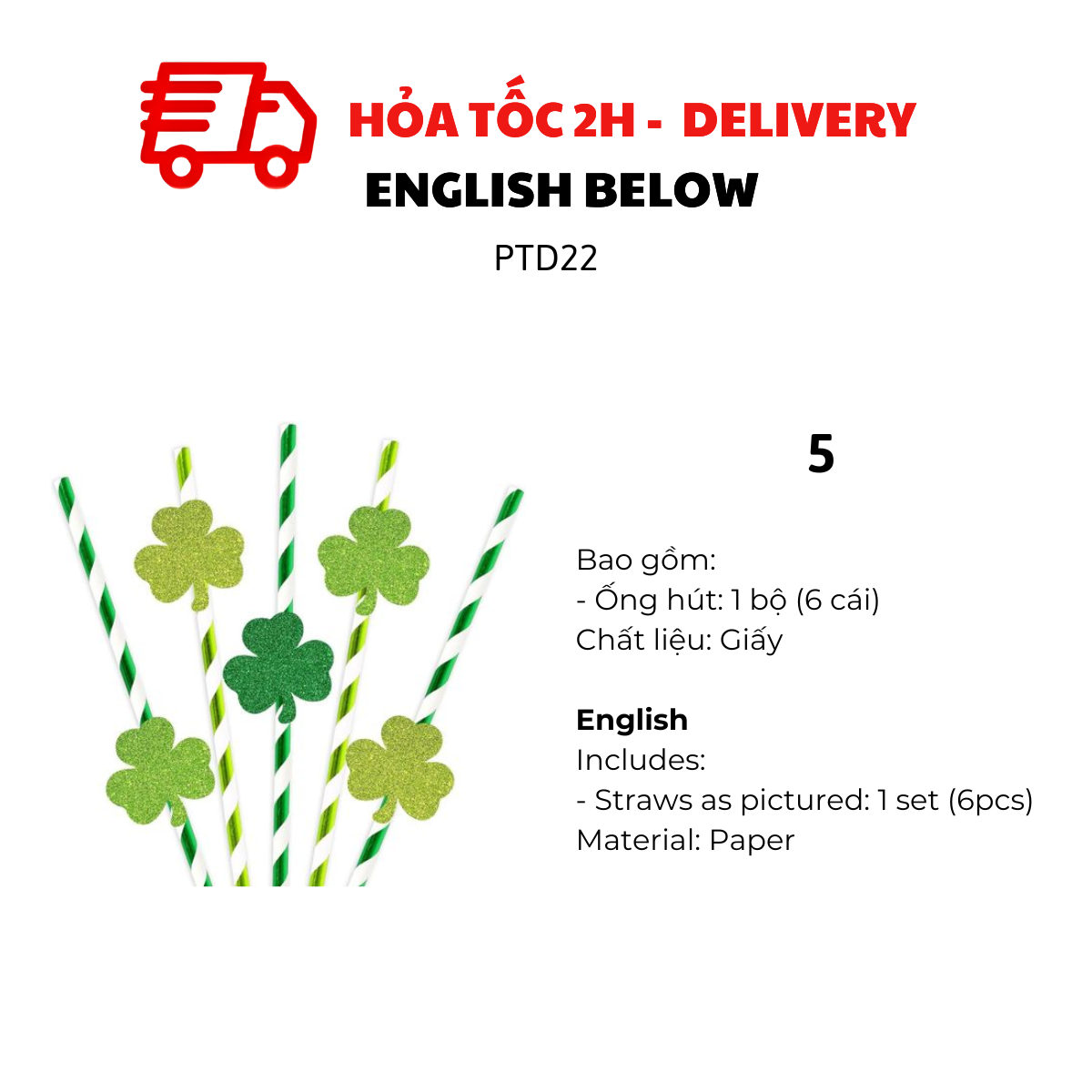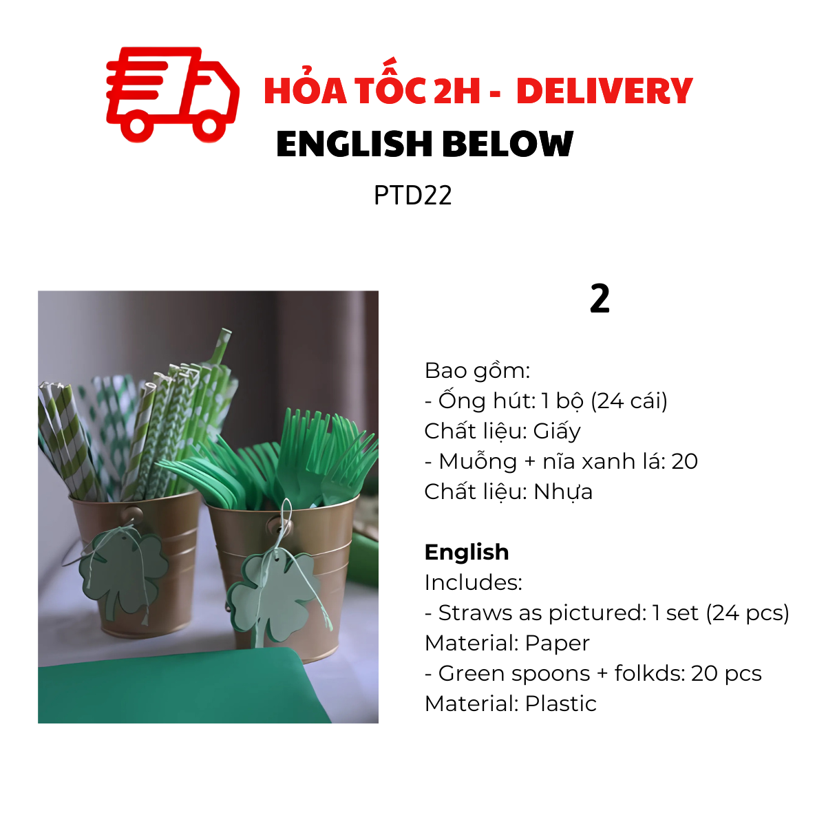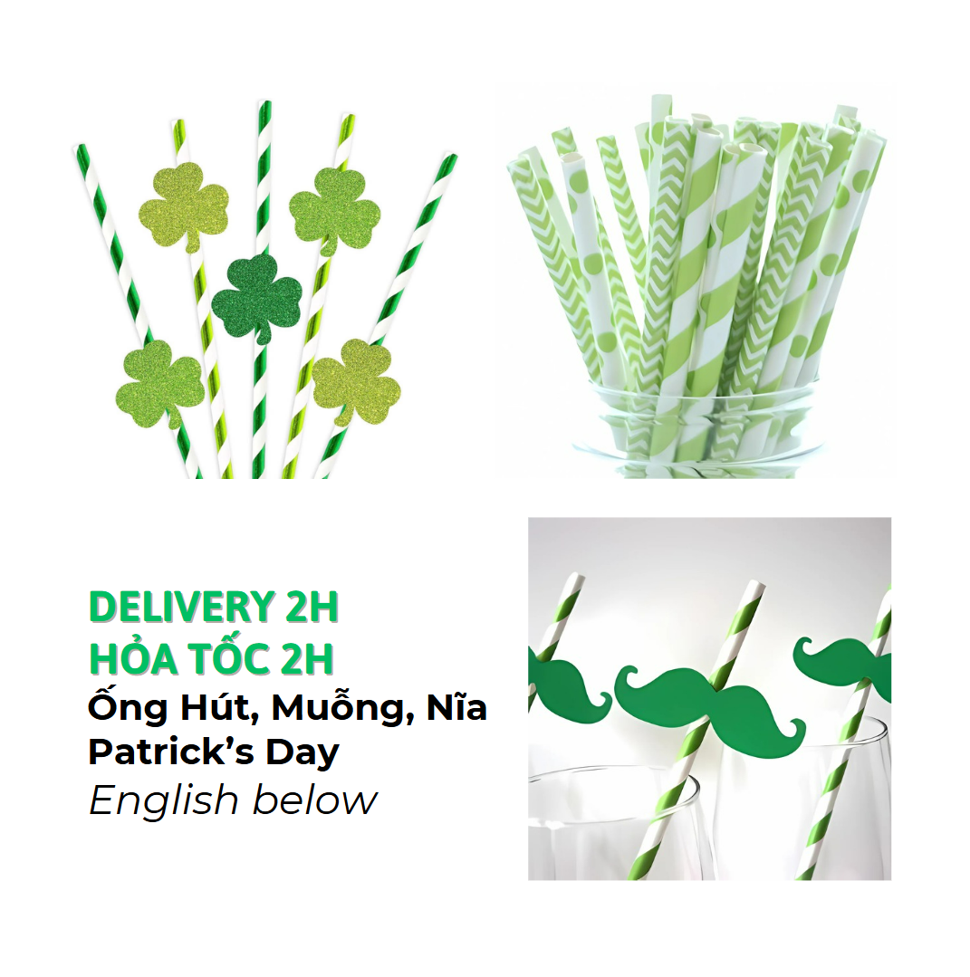 BỘ ỐNG HÚT GIẤY, MUỖNG VÀ NĨA MÀU XANH LÁ CHO LỄ HỘI PATRICK'S DAY PTD22