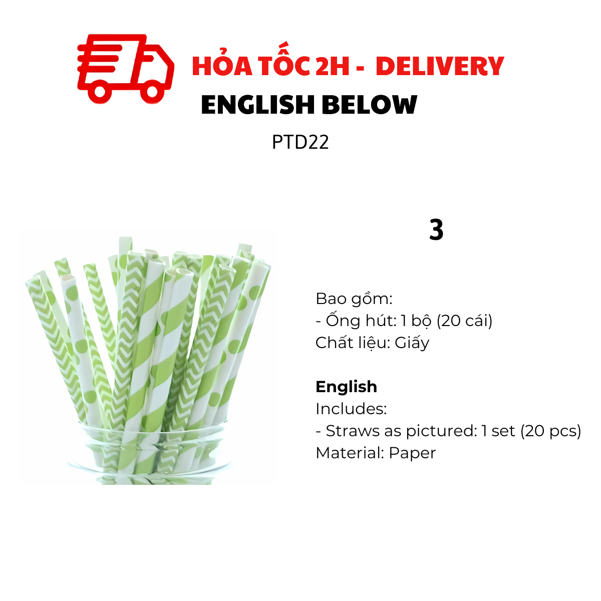 - Ống hút: 1 bộ (20 cái)